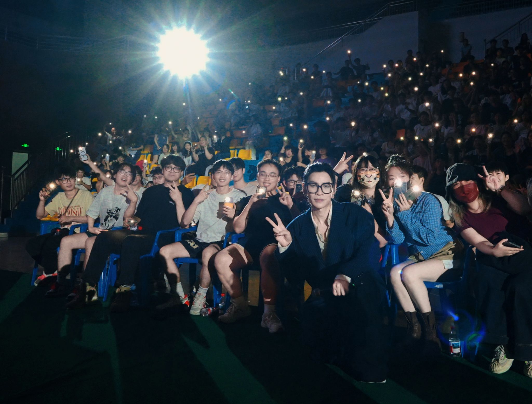 互动环节,现场同学们围绕音乐创作、职业发展、挫折应对等问题踊跃提问,话筒在人群中不断传递。邓智伟走到观众席前,结合自身经历逐一耐心解答:“我创作时也有过迷茫,但只要坚持写、坚持练,只要迈出从0到1的那一步,那1到100的路也就豁然开朗了。”互动结束后,现场还组织了大合照环节,师生们与邓智伟共同定格下这场“音乐与成长”对话的珍贵瞬间。来自不同学院的学子表示,在体育馆里不仅重温了青春记忆,更从邓智伟的经历中收获了面对困难的勇气。