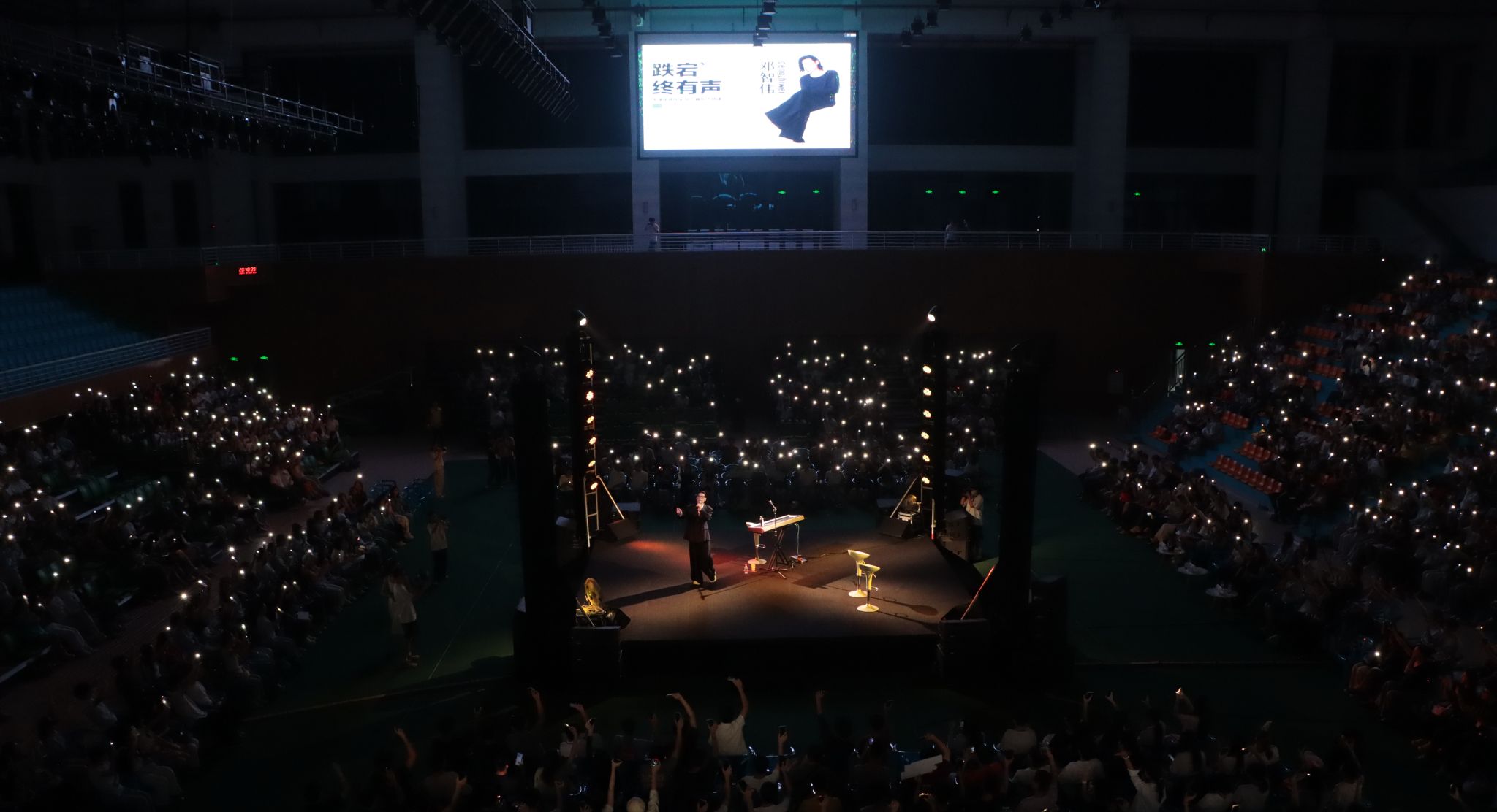 为更直观分享心路历程,他现场弹唱经典曲目片段,边弹边讲解旋律与情感表达的关联,让学子们更深刻理解“音乐是情感的传递”。现场多首经典曲目接连响起,2000名学子挥舞手机闪光灯,将韶乐园校区知行区体育馆打造成沉浸式“音乐现场”。他的经历生动诠释了“跌宕・终有声”的内涵,让现场掌声久久不息。