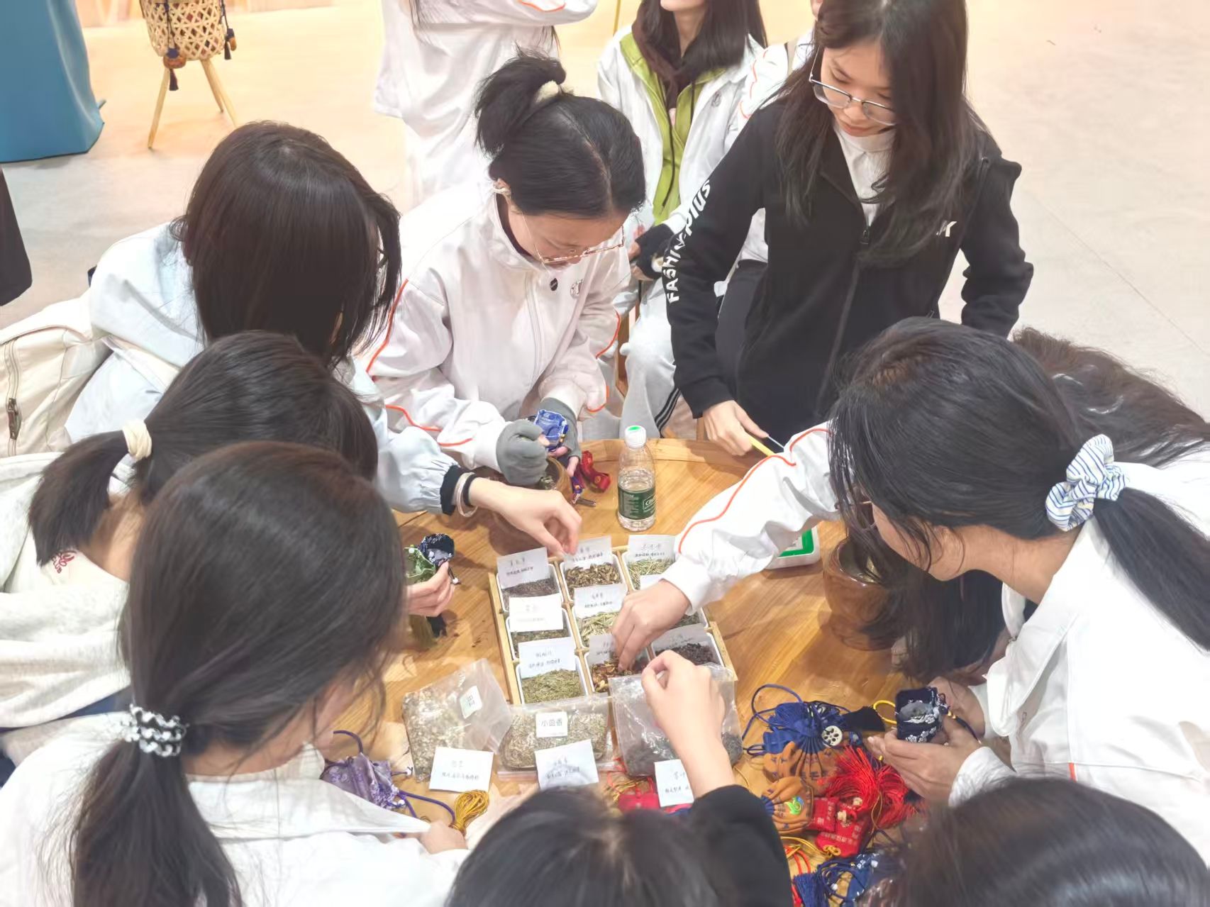 在沉浸式体验区,师生们参与香囊制作、瑶药体验等活动,切身感受瑶医药文化的实践魅力。药杵叮咚声中,仿佛在解读瑶族祖先与草木对话的密码,瑶医药作为我国民族医药的重要组成部分,每一味药都蕴含着瑶族千年的智慧。