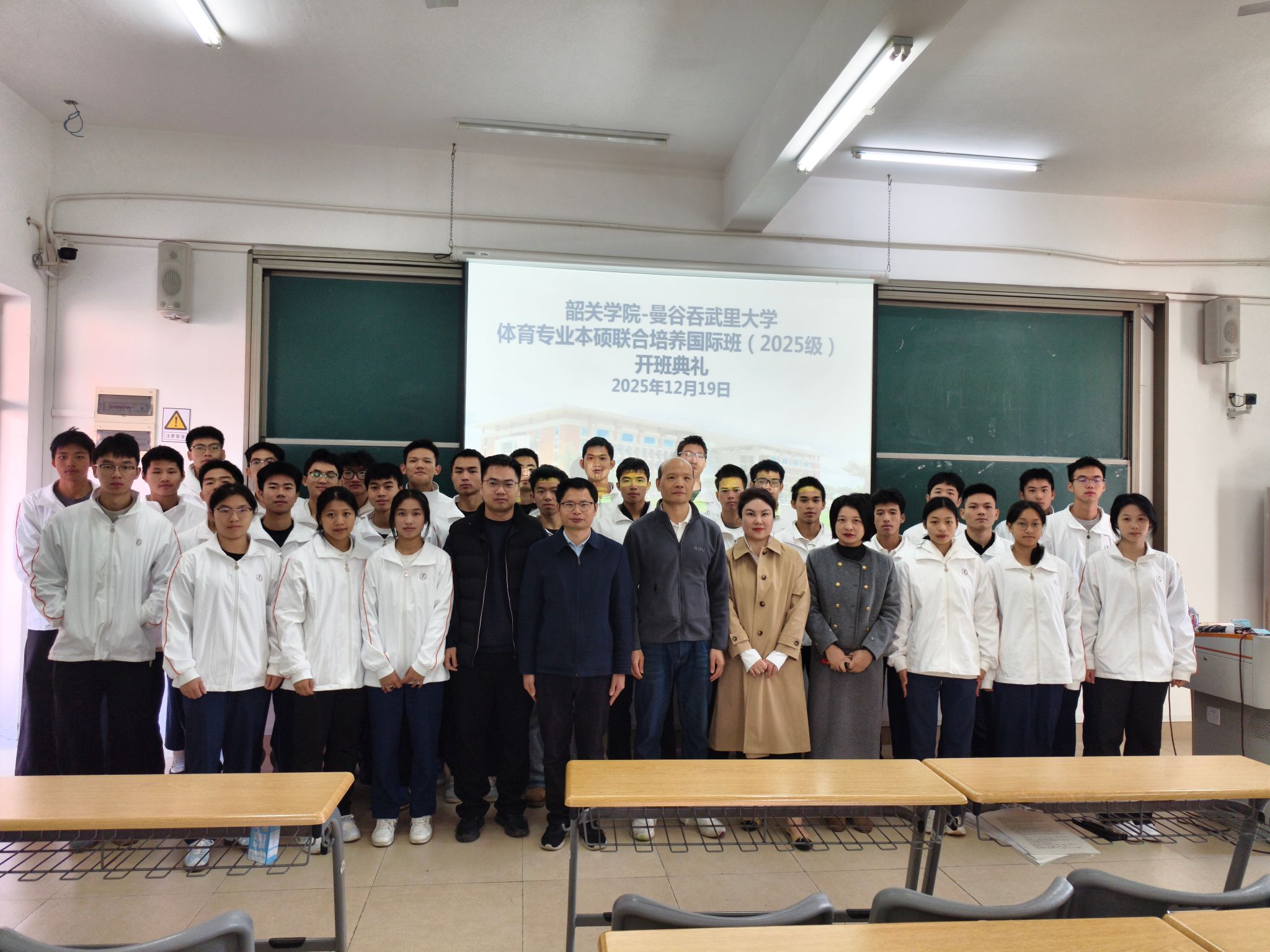12月19日,我校与泰国吞武里大学体育专业“3.5+2”本硕联合培养2025级国际班开班典礼顺利举行。泰国吞武里大学国际交流处主任赵巧稚、我校体育学院院长胡永红、党委副书记郑文芳、对外交流合作部代表及全体国际班新生共同出席典礼,见证这一重要时刻。