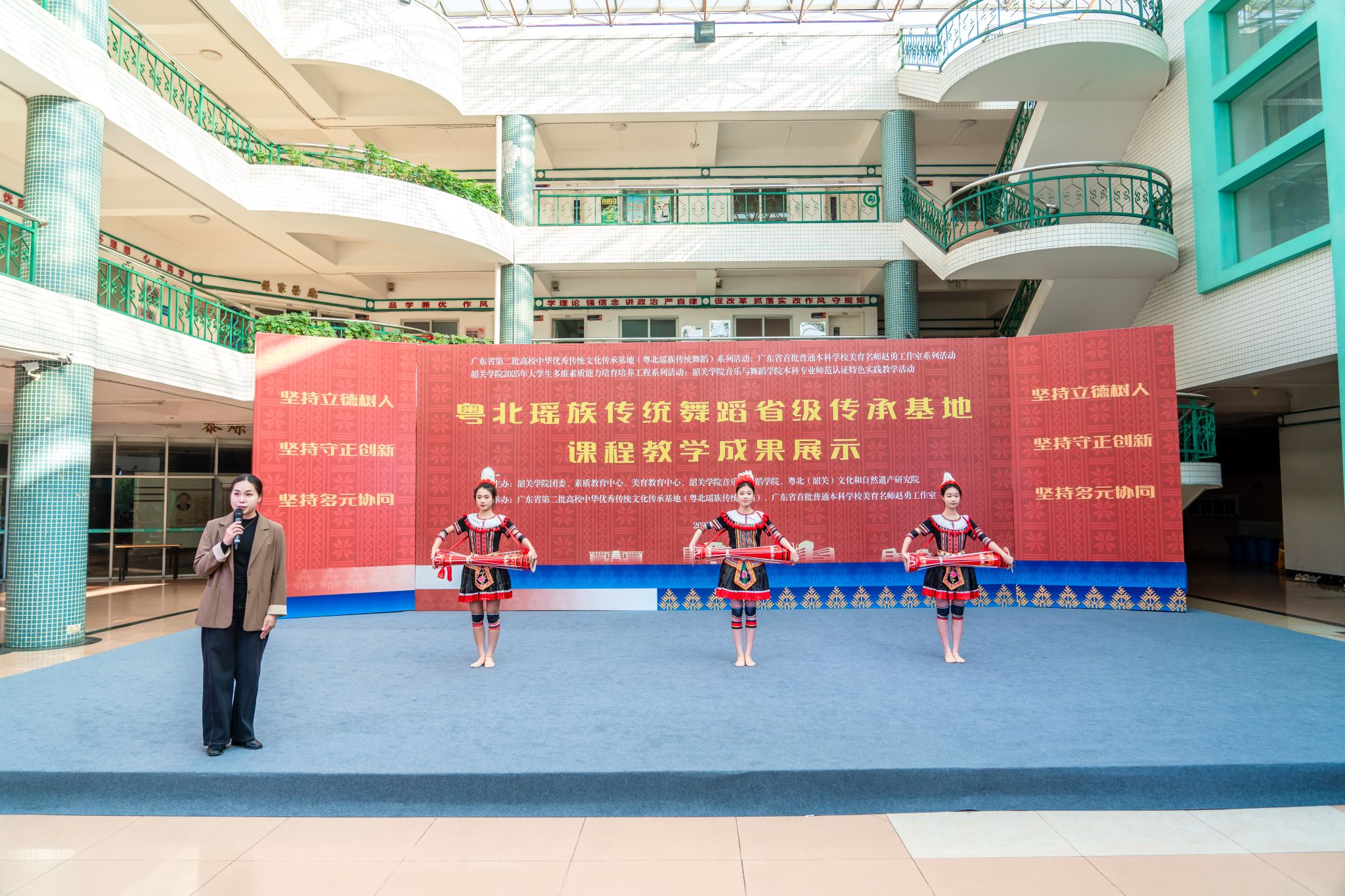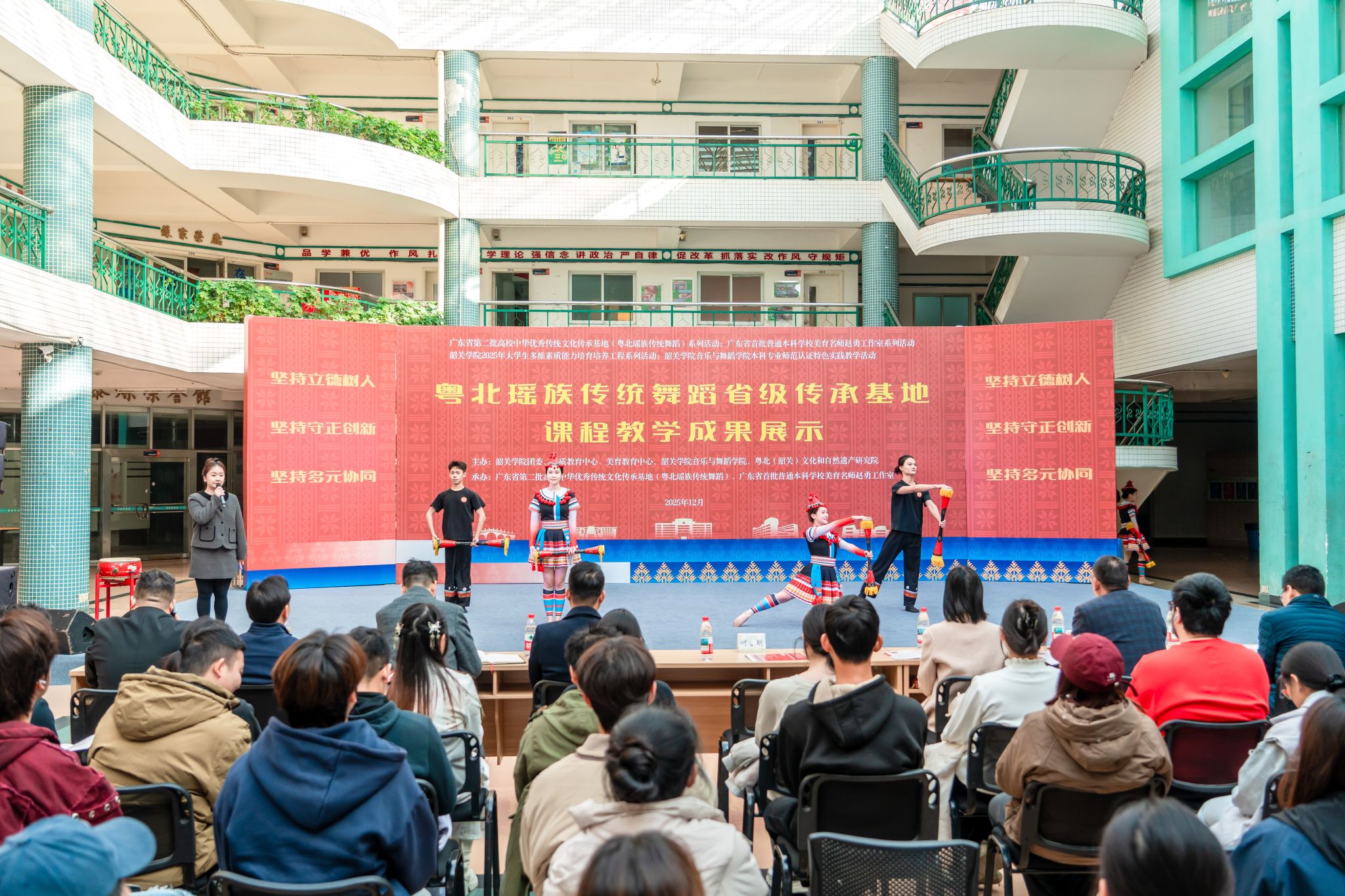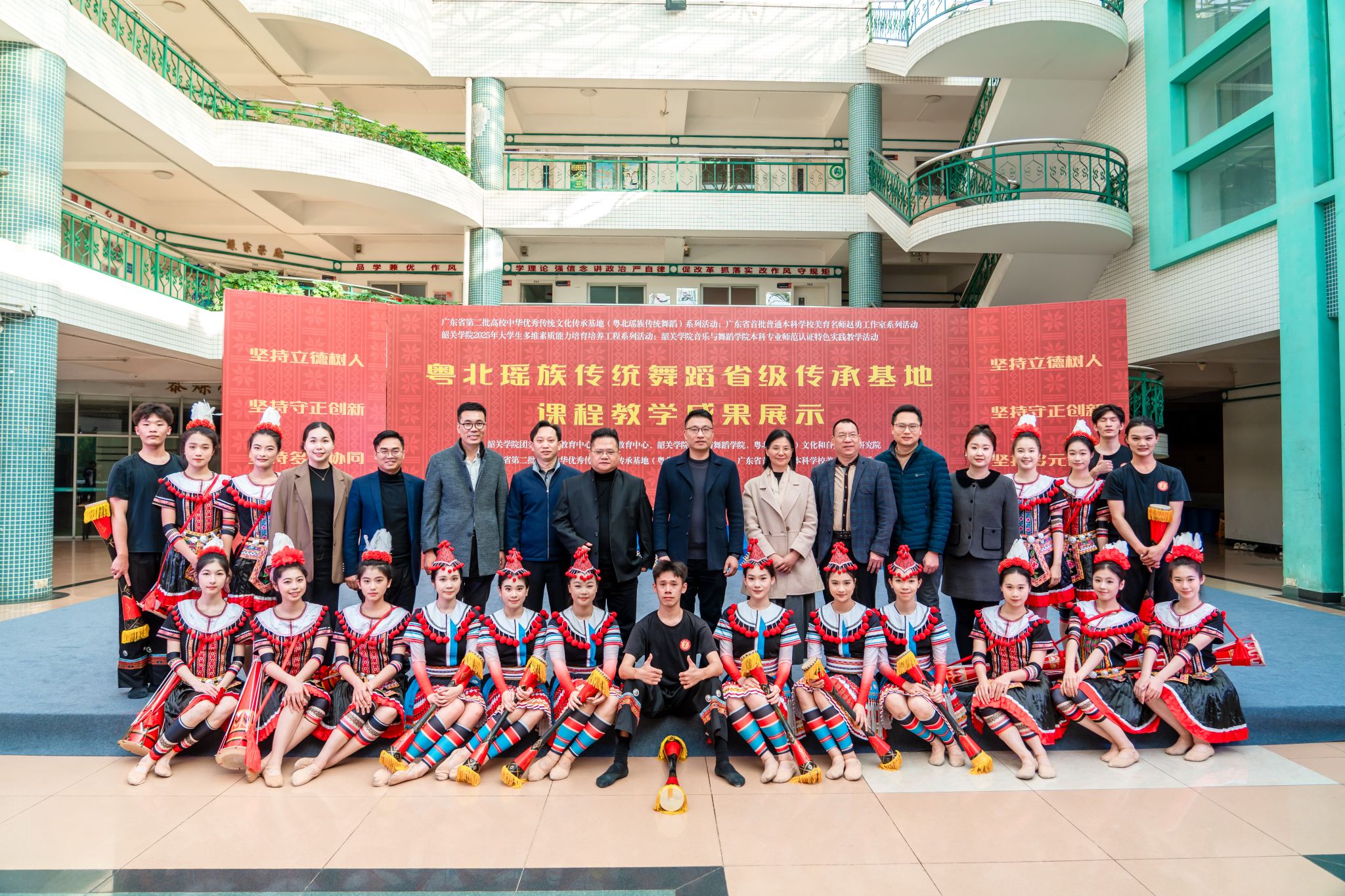 12月29日下午,由校团委、素质教育中心、美育教育中心、音乐与舞蹈学院、粤北(韶关)文化与自然遗产研究院联合主办,广东省第二批高校中华优秀传统文化传承基地(粤北瑶族传统舞蹈)、广东省首批普通本科学校美育名师赵勇工作室承办的“粤北瑶族传统舞蹈省级传承基地课程教学成果展示活动”在韶关学院善美区黎灿学生活动中心一楼举行。学校副校长何金明出席活动并讲话。