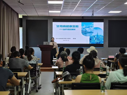 在科普讲座中,附属医院口腔科主任李薇医生深入浅出地讲解了牙齿、牙龈、口腔黏膜等口腔基本构造,使听众对口腔结构有了更为清晰的认识。同时,她还详尽介绍了口腔疾病的常见诱因、有效预防措施以及科学的刷牙方法,为师生们提供了宝贵的健康指导。