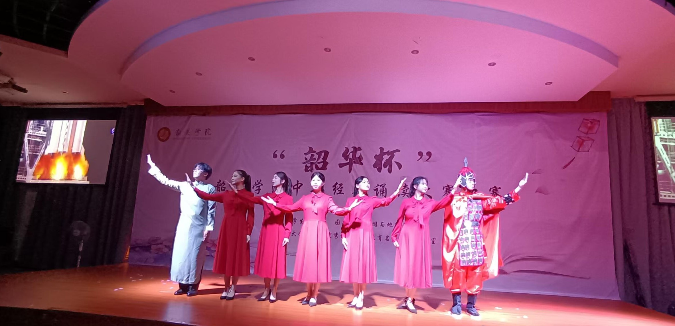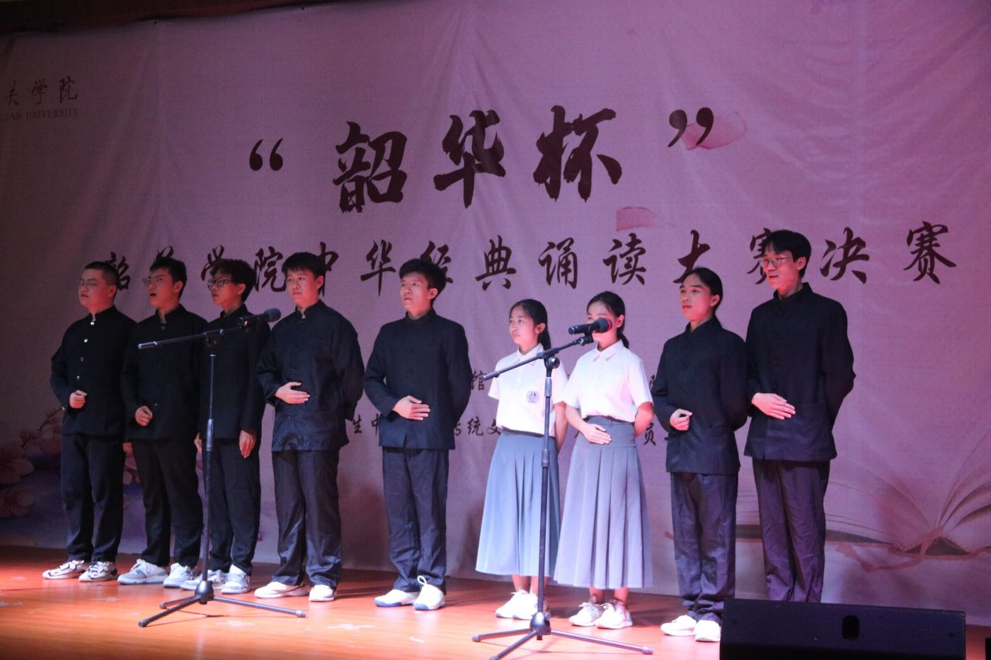 为弘扬中华优秀传统文化,提升大学生人文素质,涵养新时代青年家国情怀和高尚道德情操,我校于6-9月间举办第一届“韶华杯”大学生中华经典诵读比赛。初赛由各学院组织,复赛分为东北、西、南三个赛区,分别在学生社区、教学楼举行。