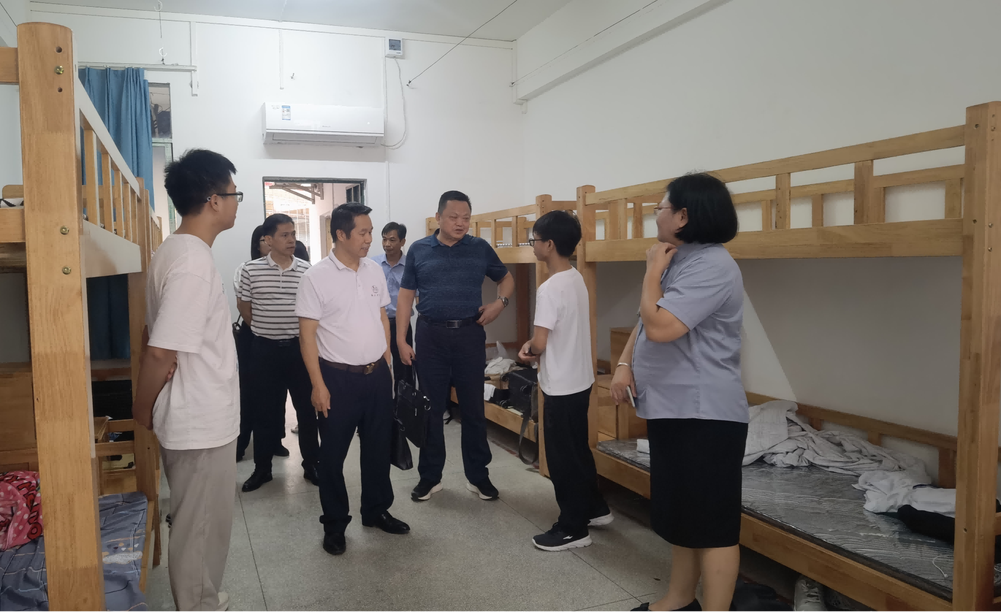在阳山中学看望实习生,了解实习生住宿环境