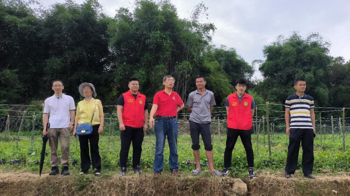 钟健陪同科技特派员团队一行前往中联村村委会赖屋村,同村民黄贱福了解其负责的三多专业养殖合作社发展情况,并实地考察其种养田地规划。在调研过程中,科技特派员团队对三多专业养殖合作社后续的发展提出初步建议,如使用有机肥替代传统化肥,实现绿色种养,注意水塘温度对淡水鱼养殖的影响等。