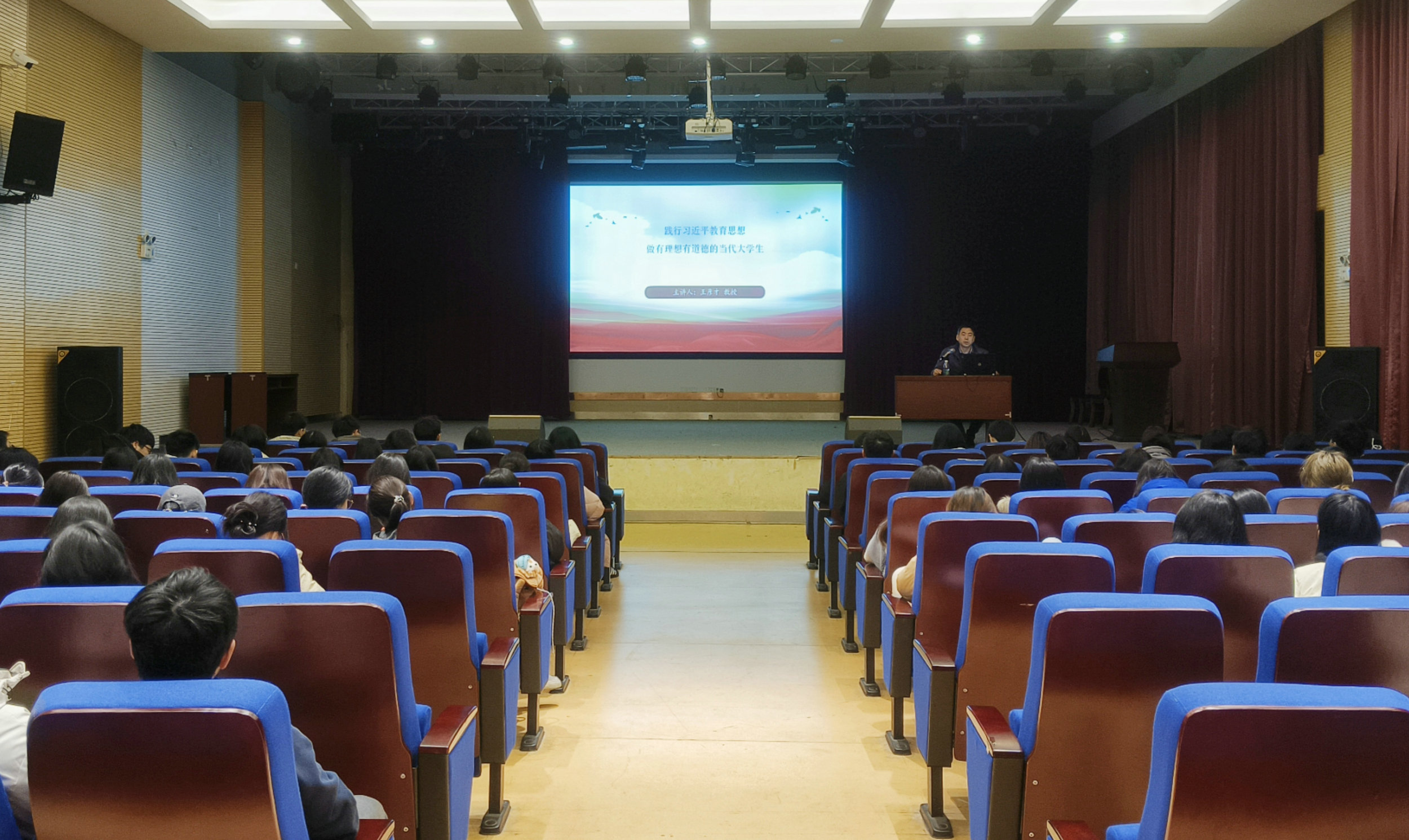 王彦才则以《践行习近平总书记关于教育重要论述,做有理想有道德的当代大学生》为主题,为同学们解读了习近平总书记关于教育重要论述的科学内涵,指出“九个坚持”“国无德不兴,人无德不利”和“六个下功夫”对学生的重要性,鼓励同学们成为理想远大、品德高尚、有良好生活习惯的新时代青年!