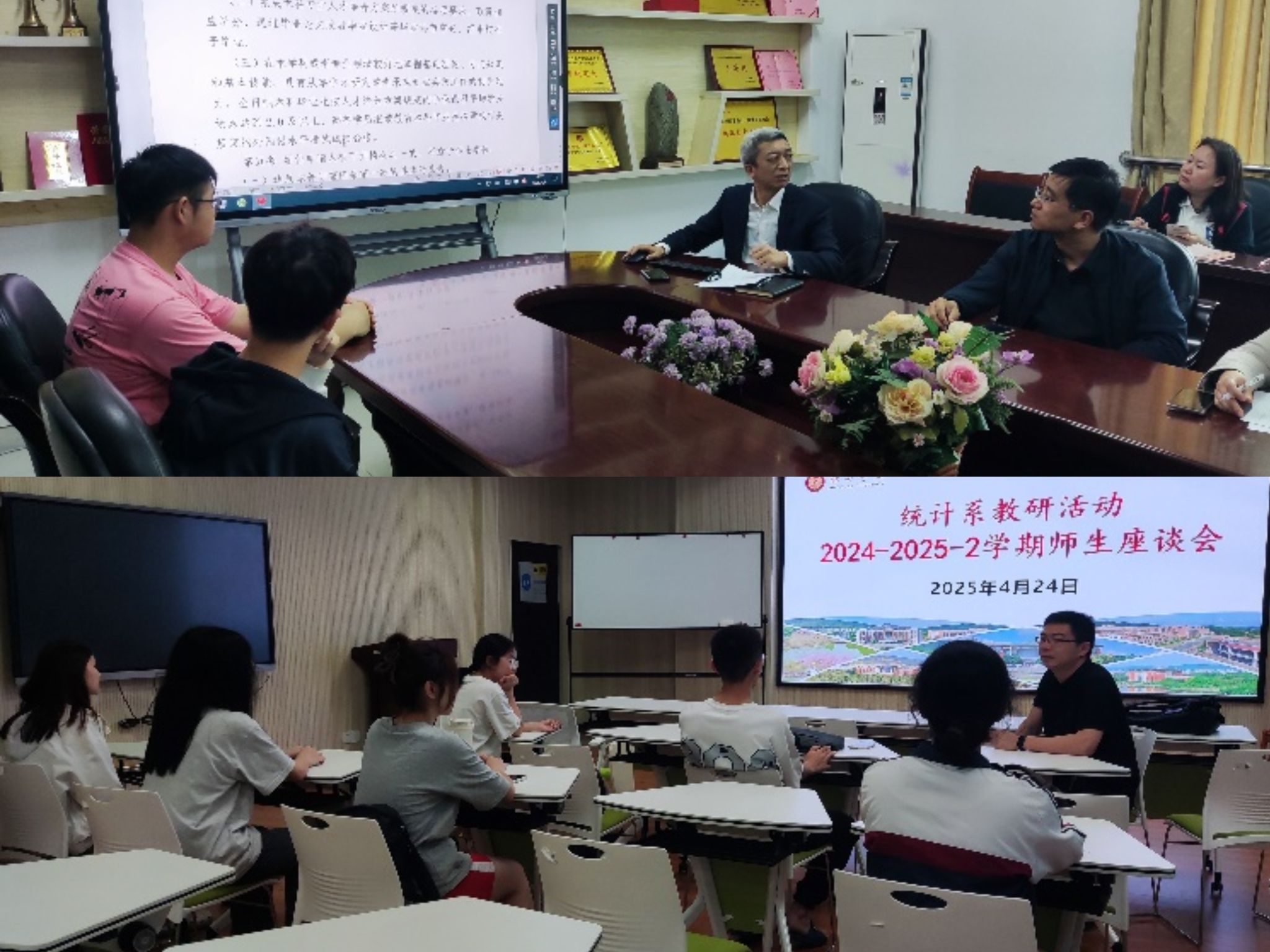 坚持问题导向,构建多层次对话机制。4月9日,宋杰院长主持召开《韶关学院学士学位授予工作细则》专题研讨会,组织师生代表就学士学位授予条件、授予学位的工作程序等条款展开研讨,收集修订建议,强化制度建设的科学性与人文性。4月24日,王尚九老师牵头召开师生座谈会,2022-2024级统计学、应用统计学专业学生代表围绕课程设置、学科竞赛、考研就业等议题展开讨论,针对学生提出的"增设统计软件实训模块""建立竞赛导师库"等建议,系部现场回应解决方案,推动教学管理与学生需求精准对接。