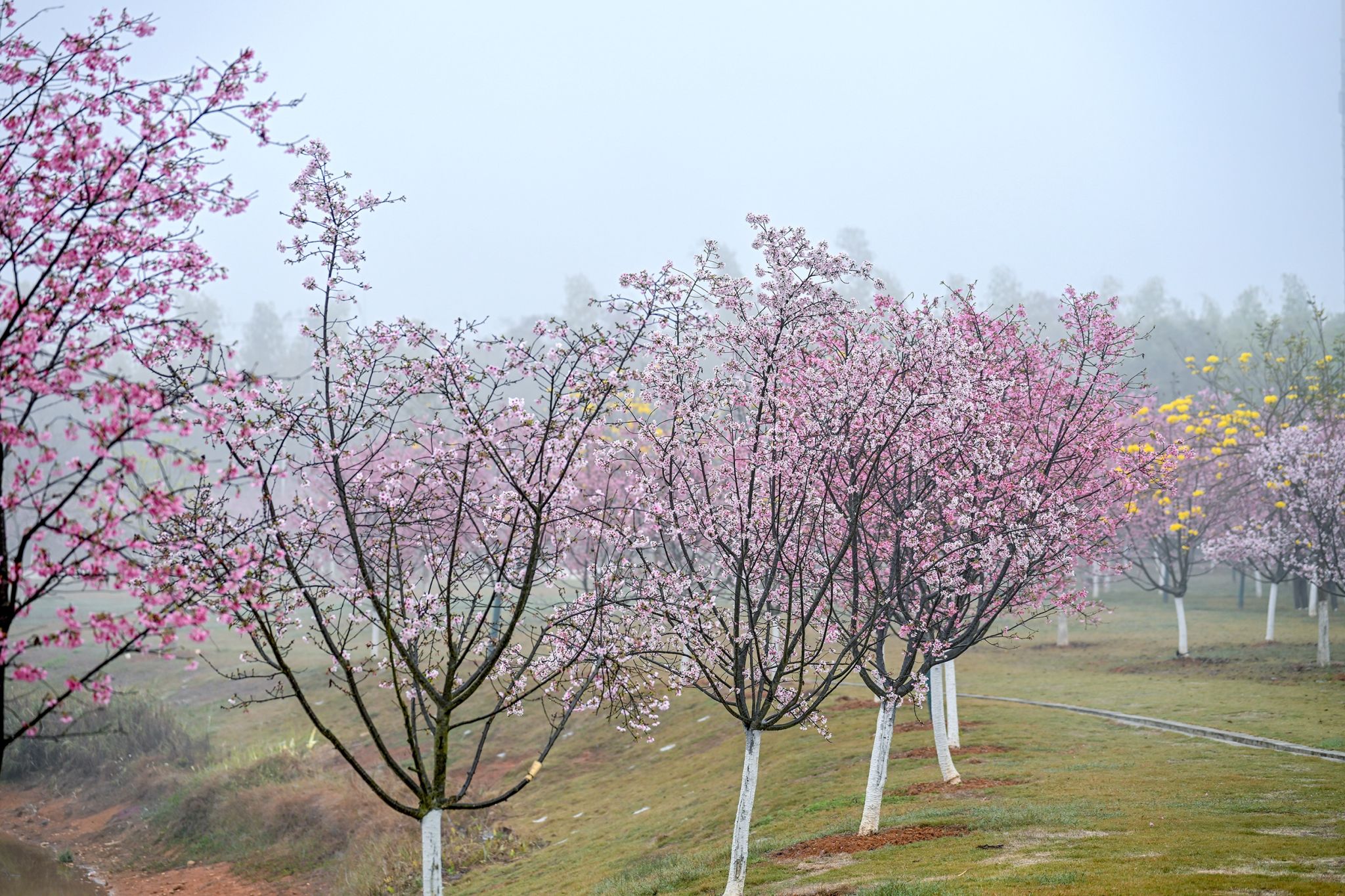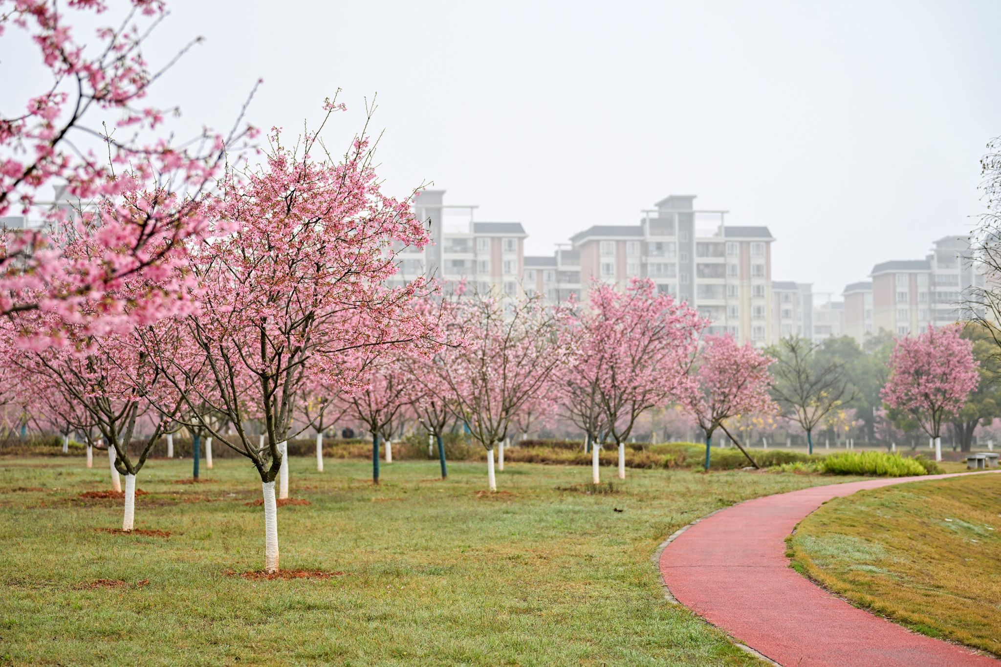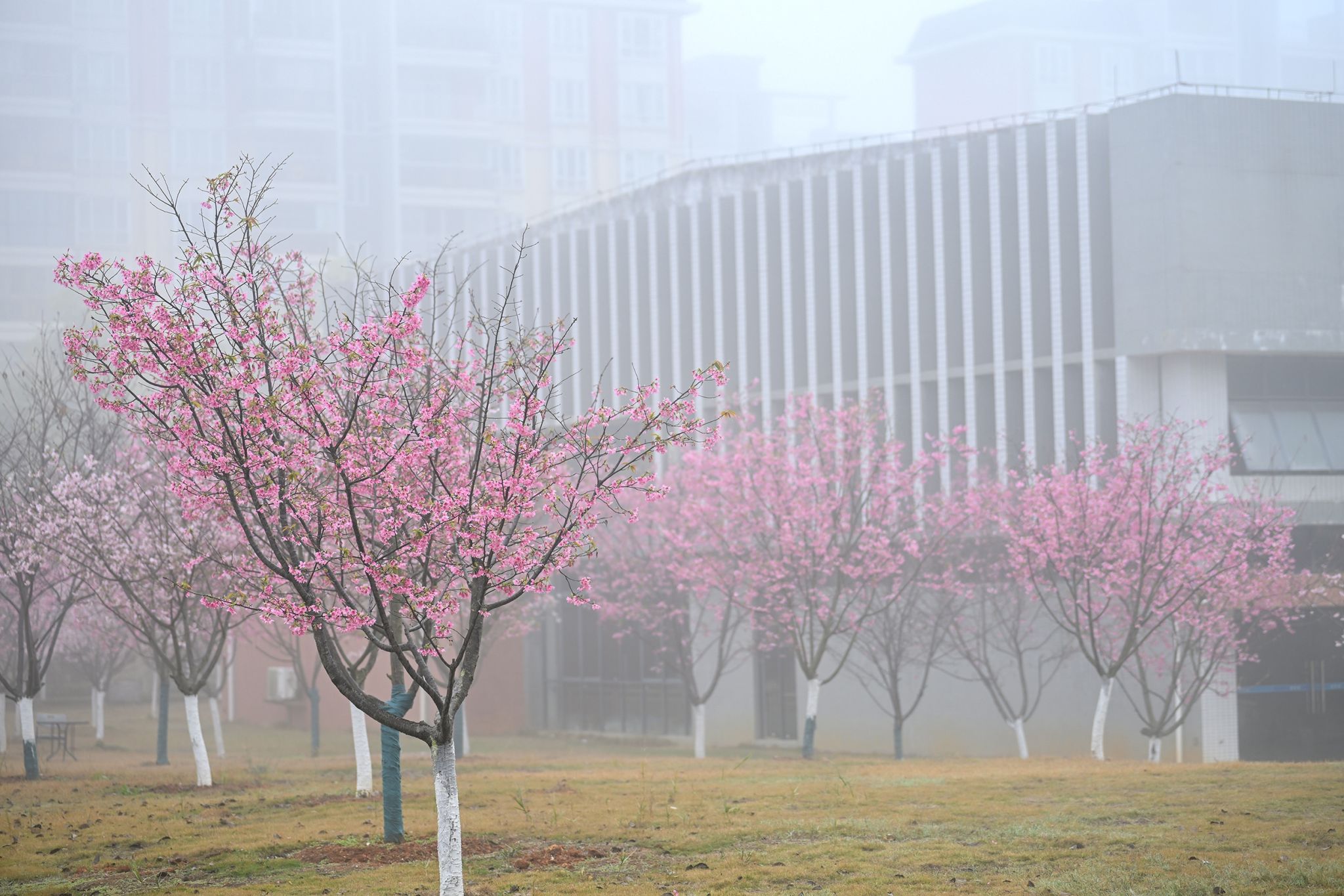 粉白如云霞铺满校园