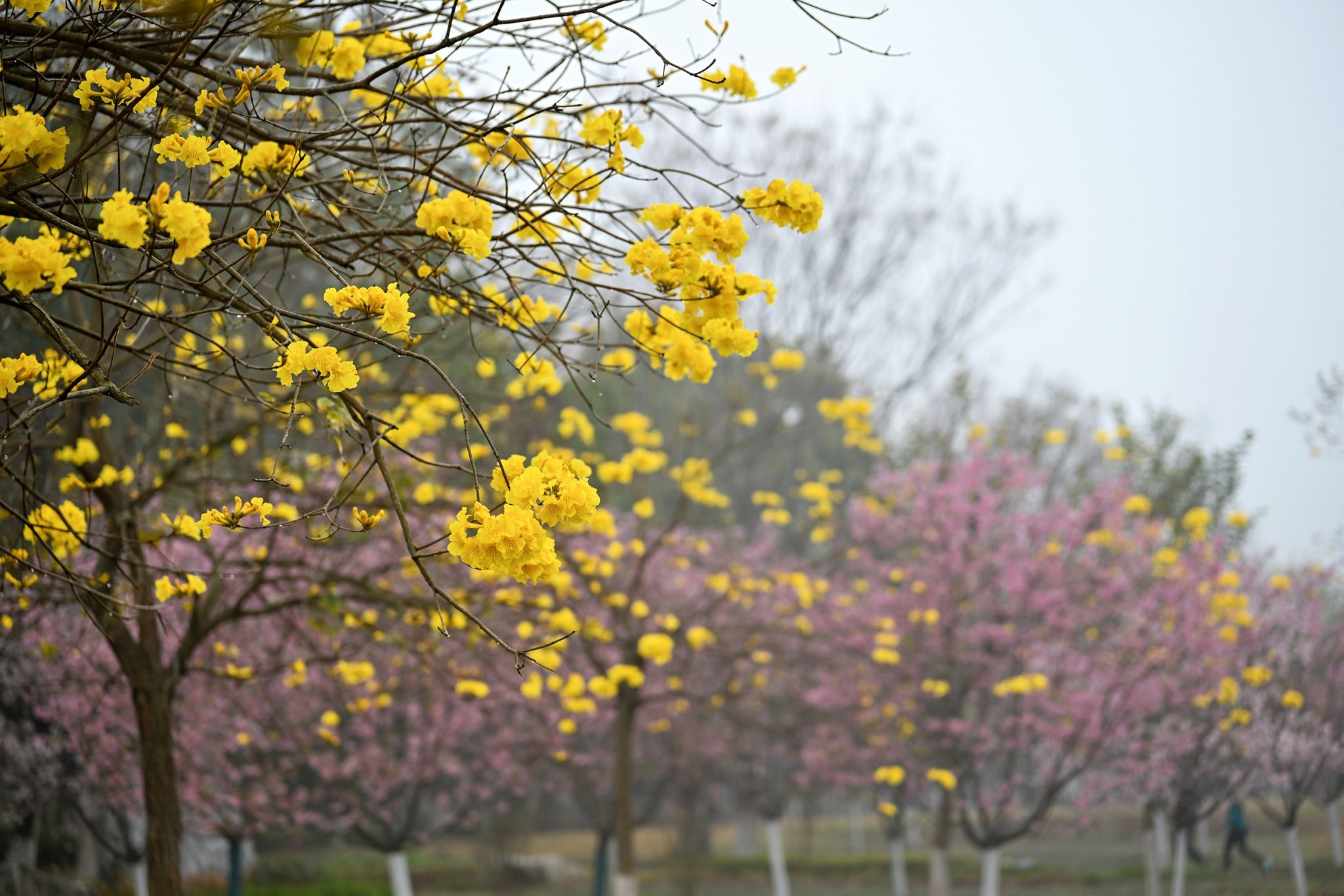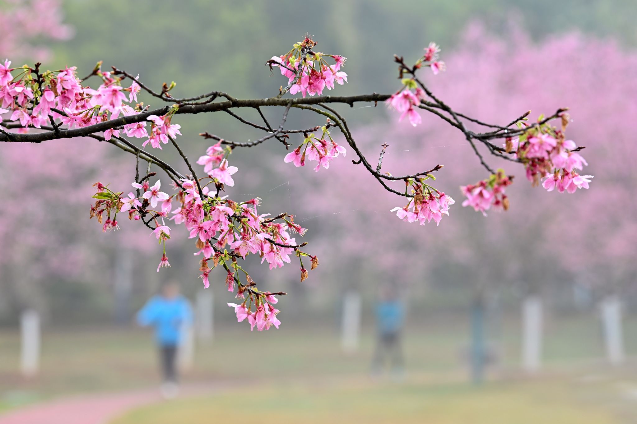 枝头繁花与青春身影相映