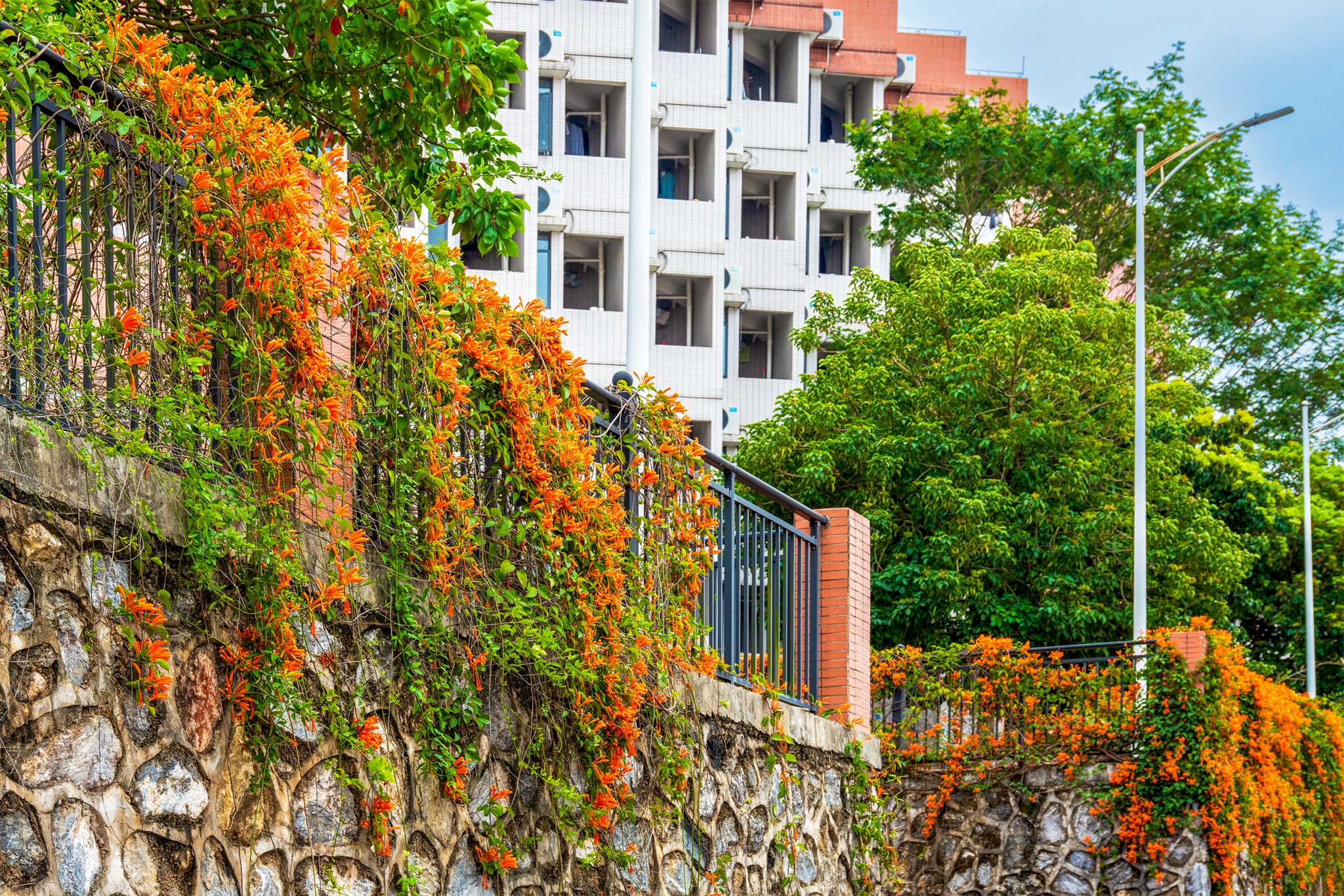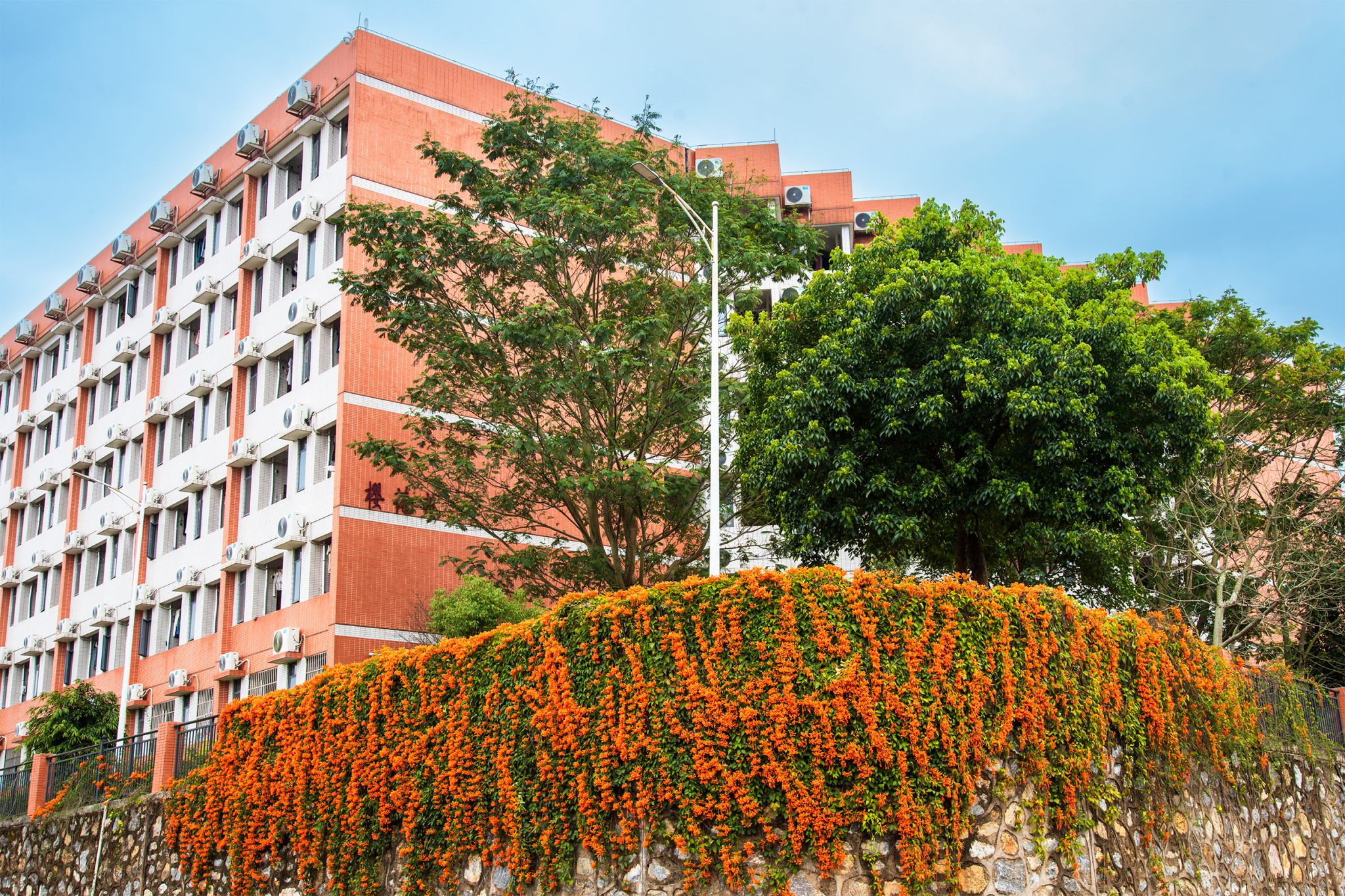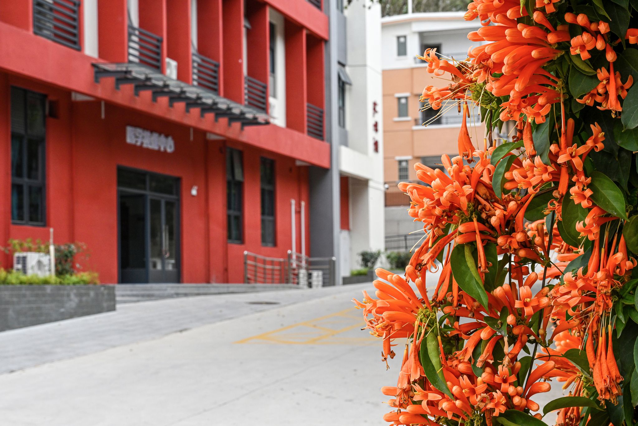 红砖楼宇旁