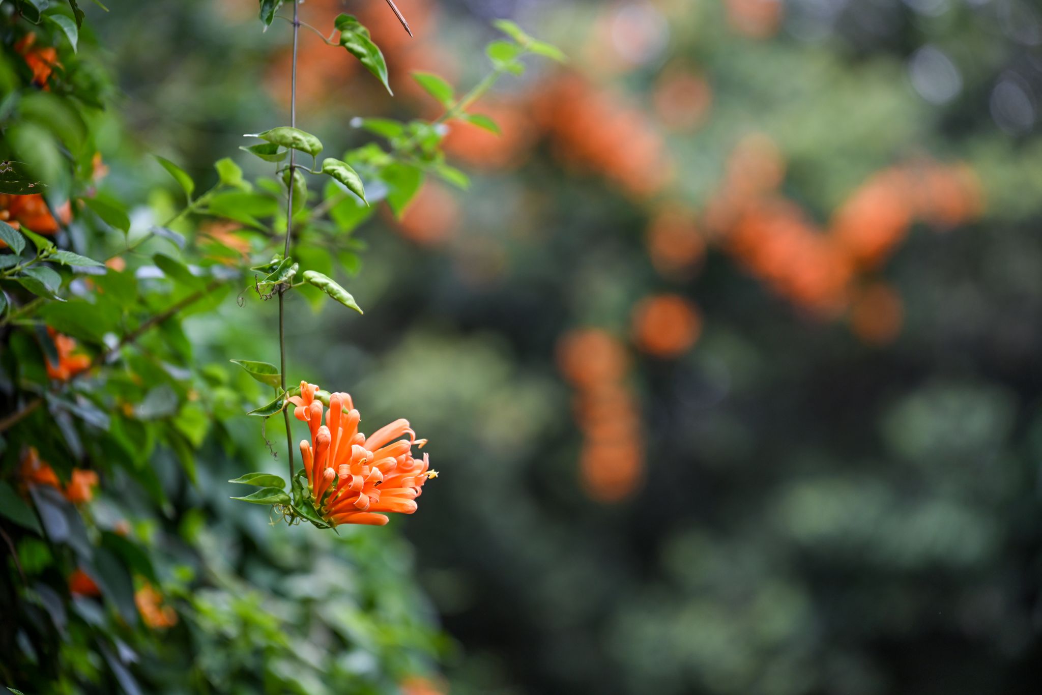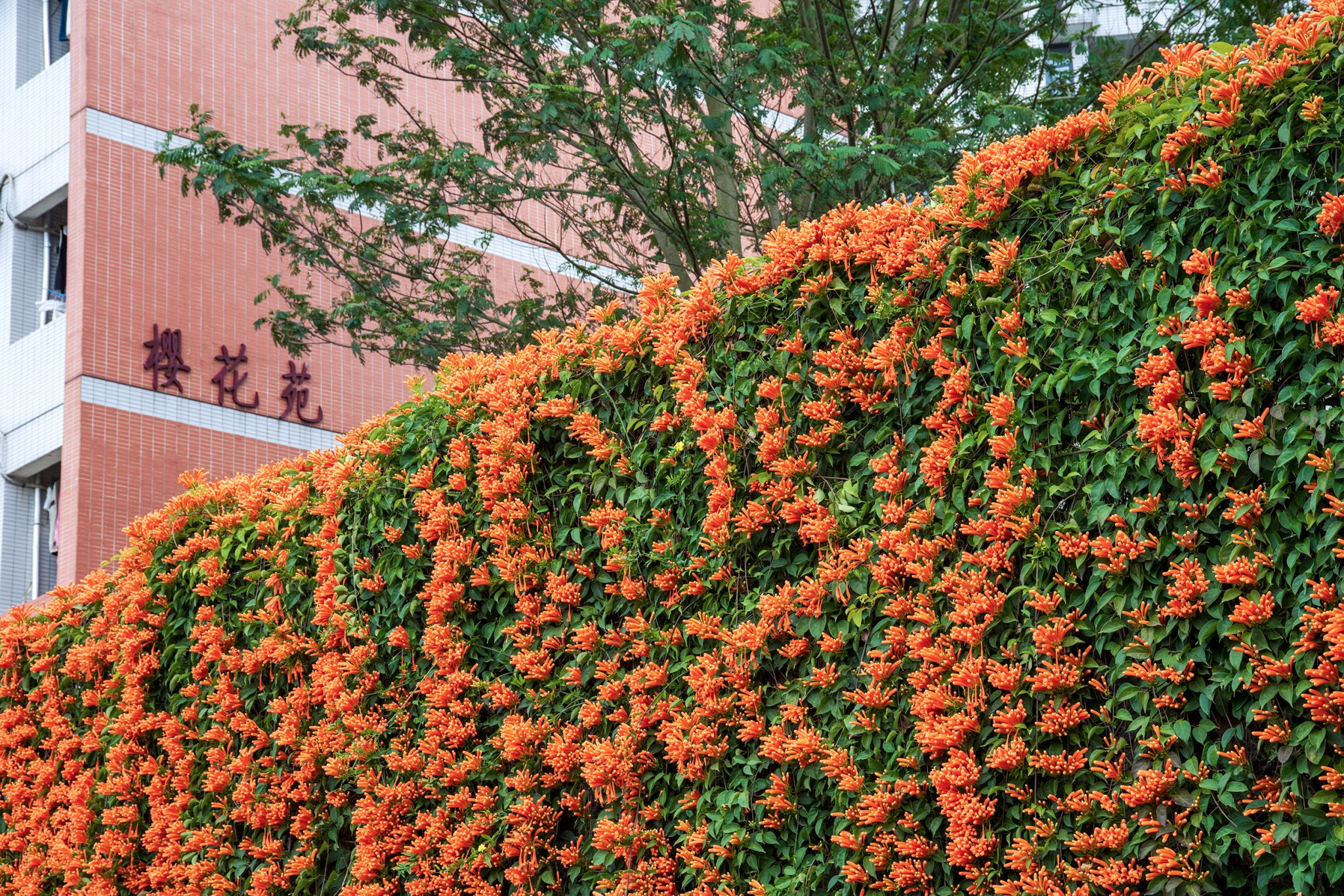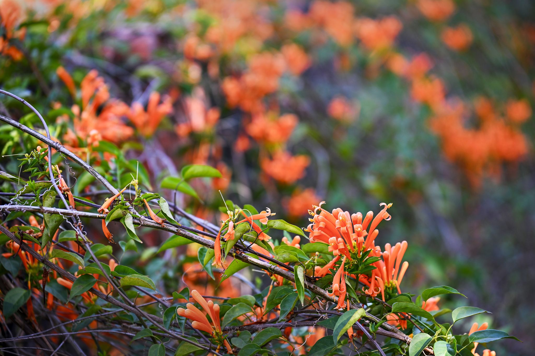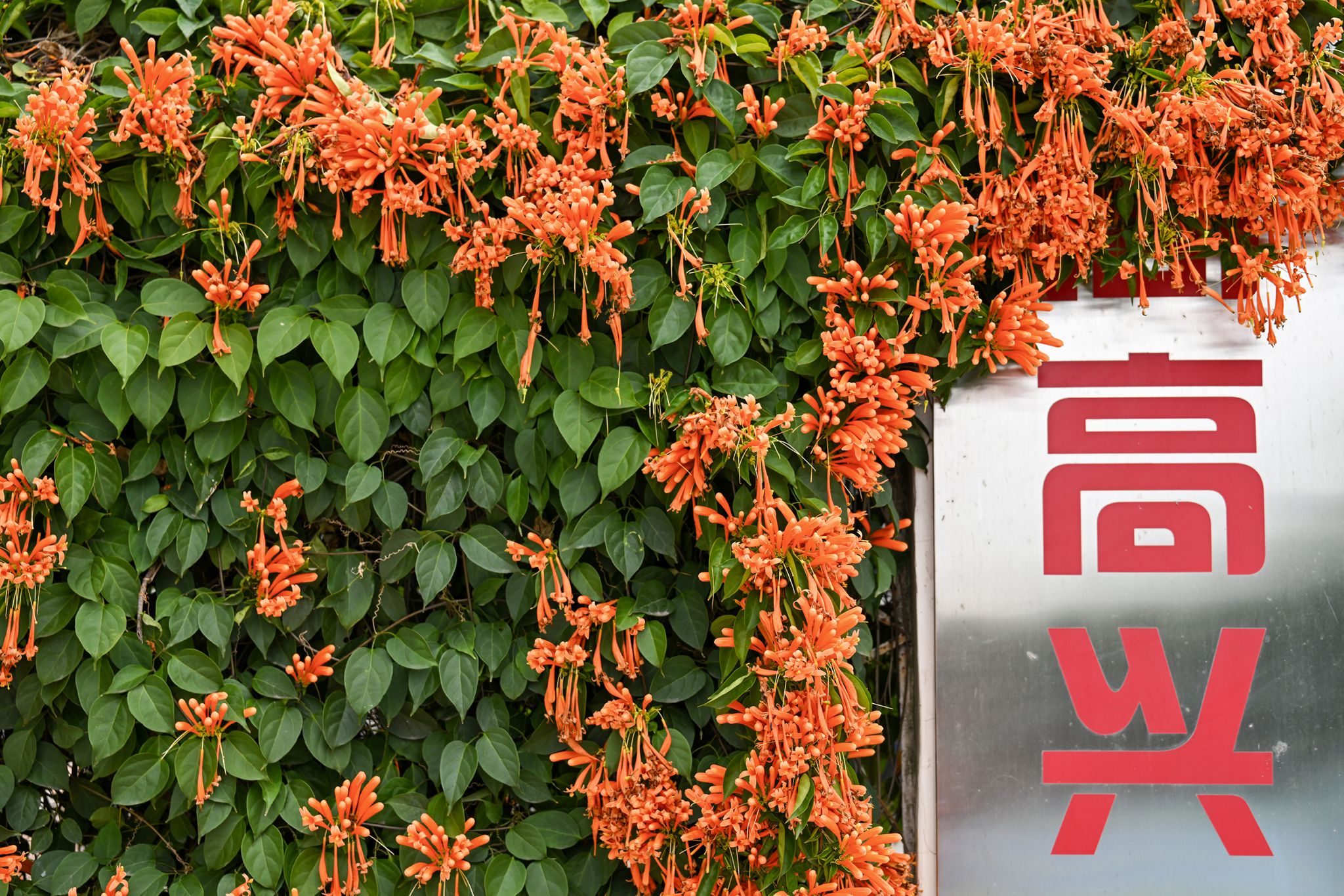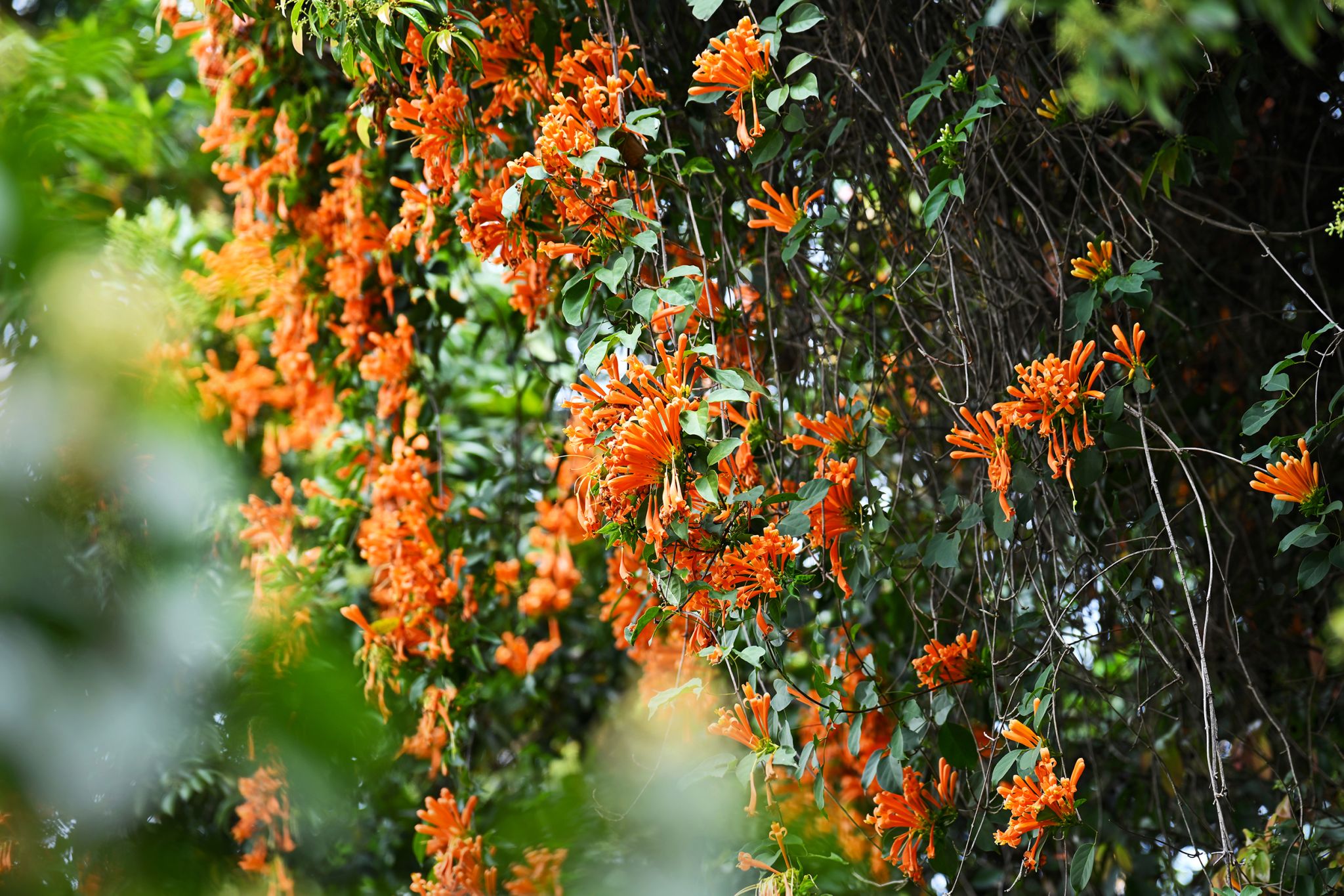 一串串橙红的炮仗花热烈炸开