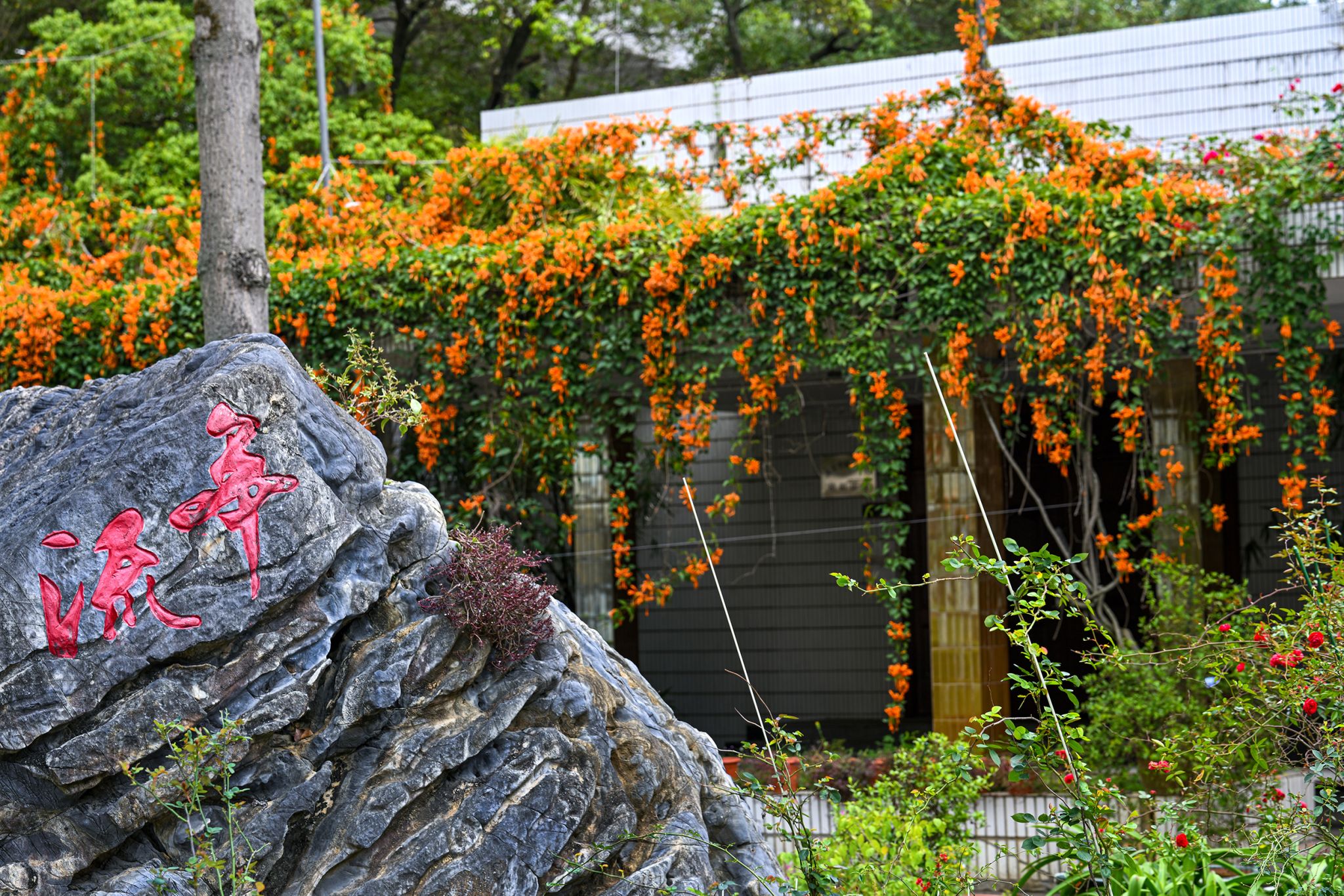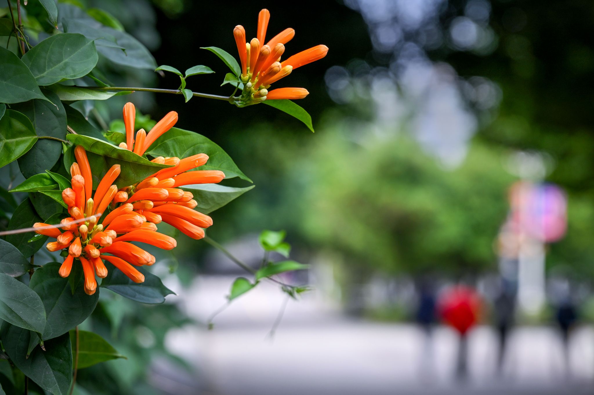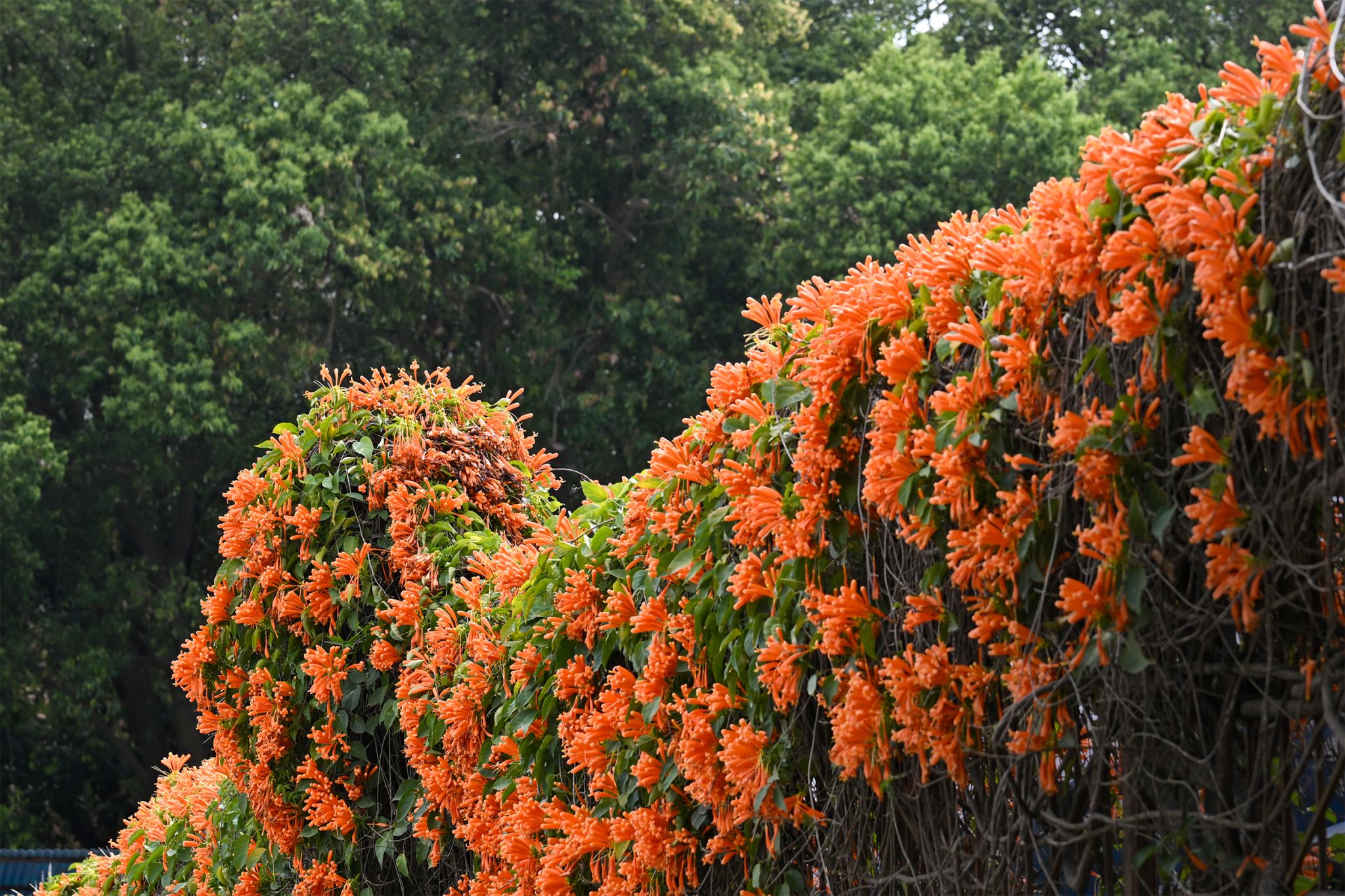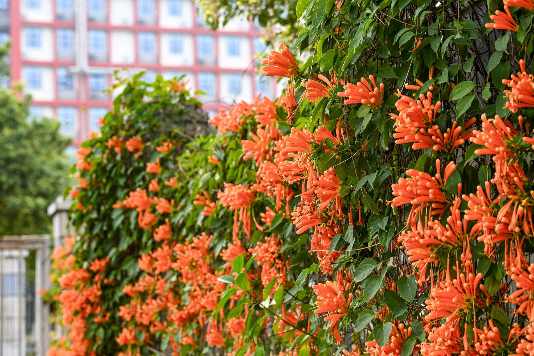 一串串橙红的炮仗花热烈炸开