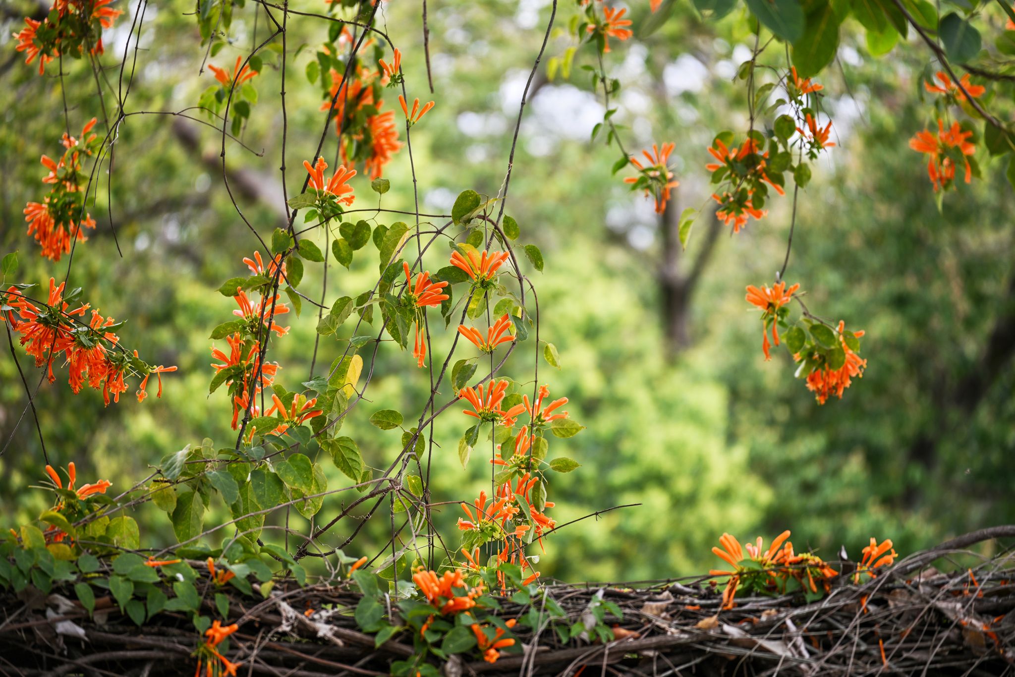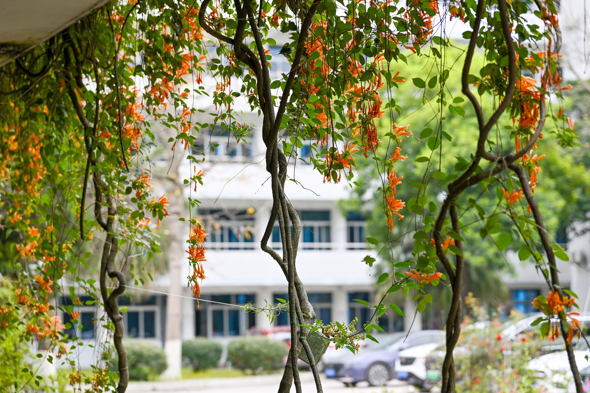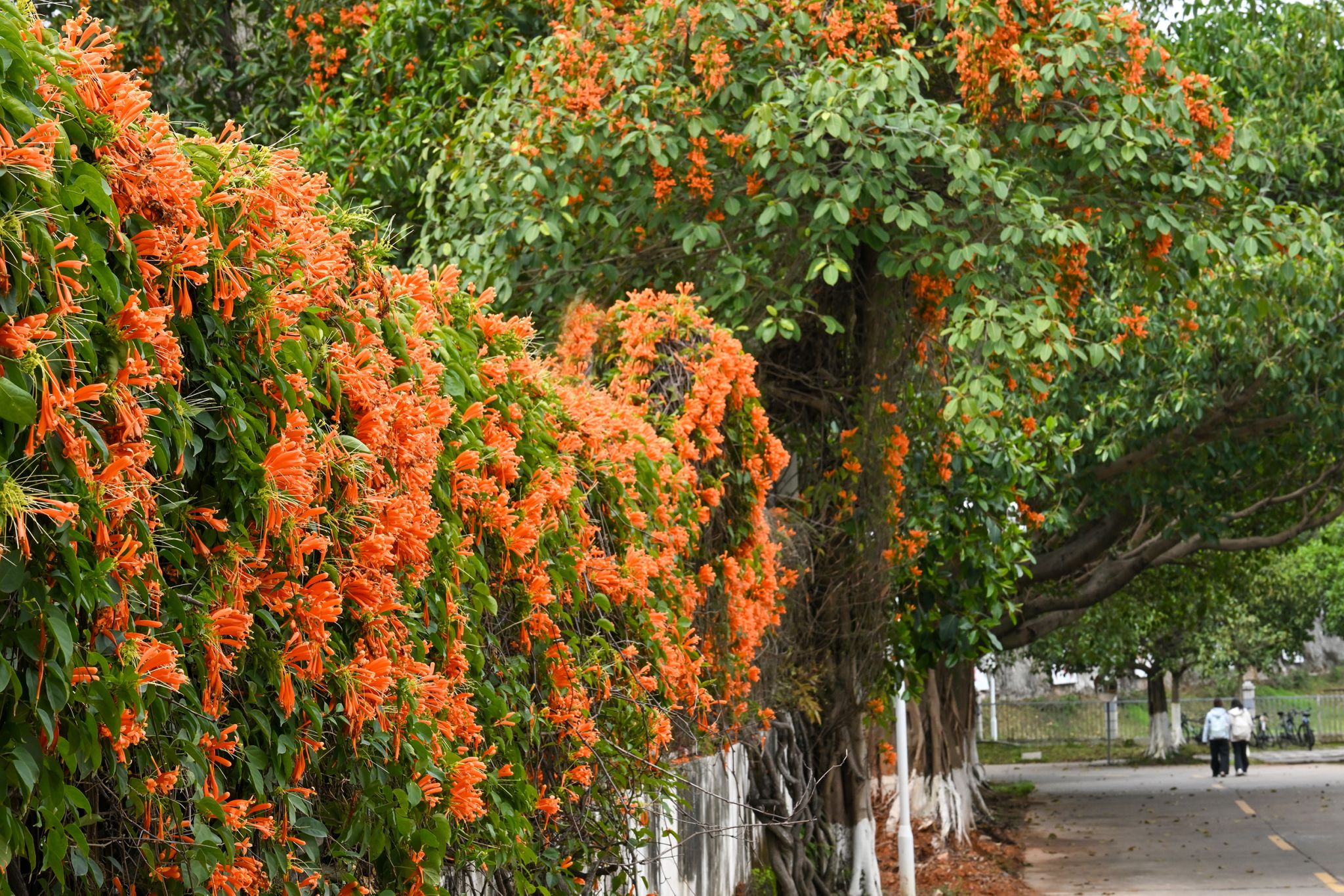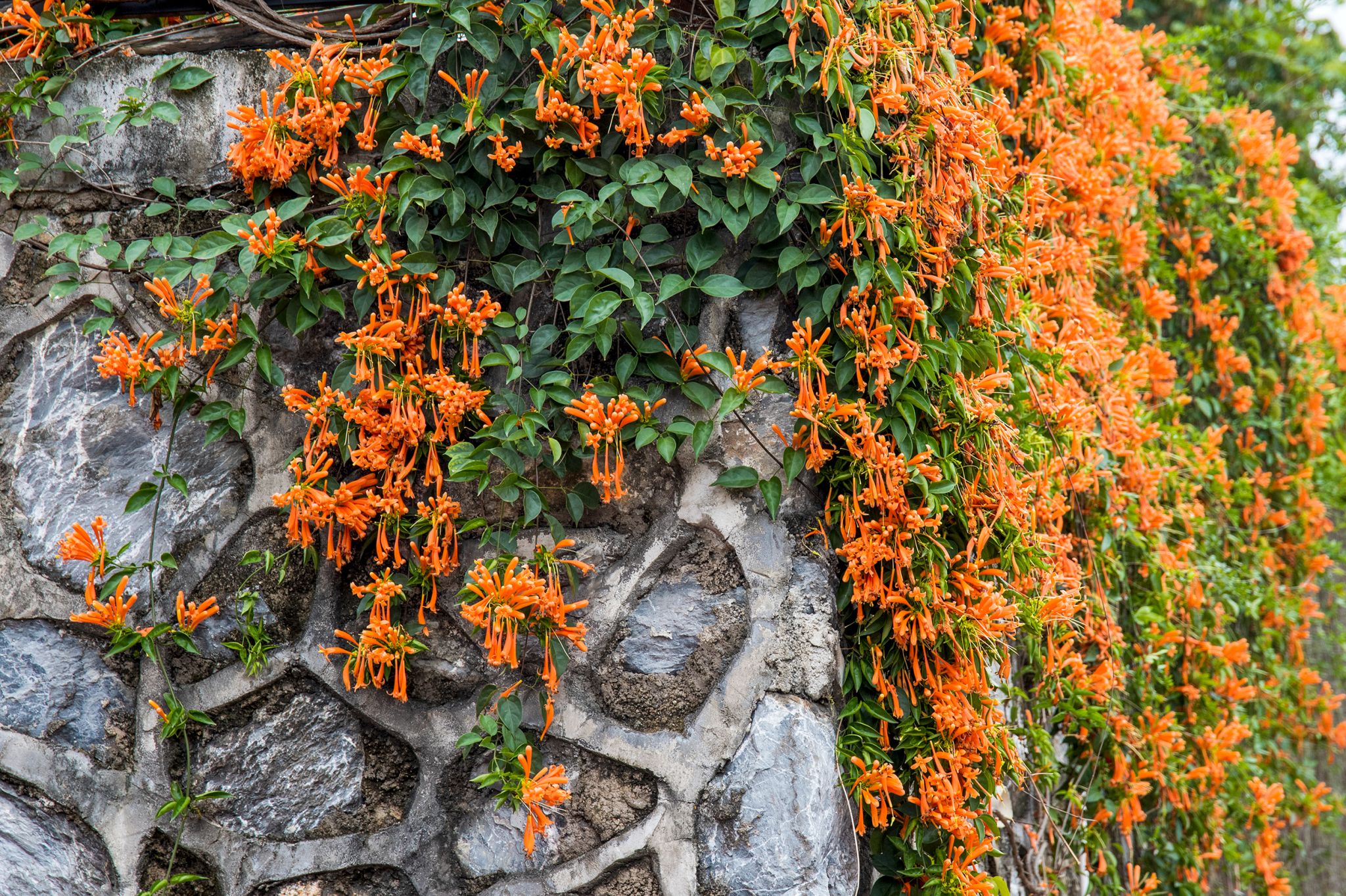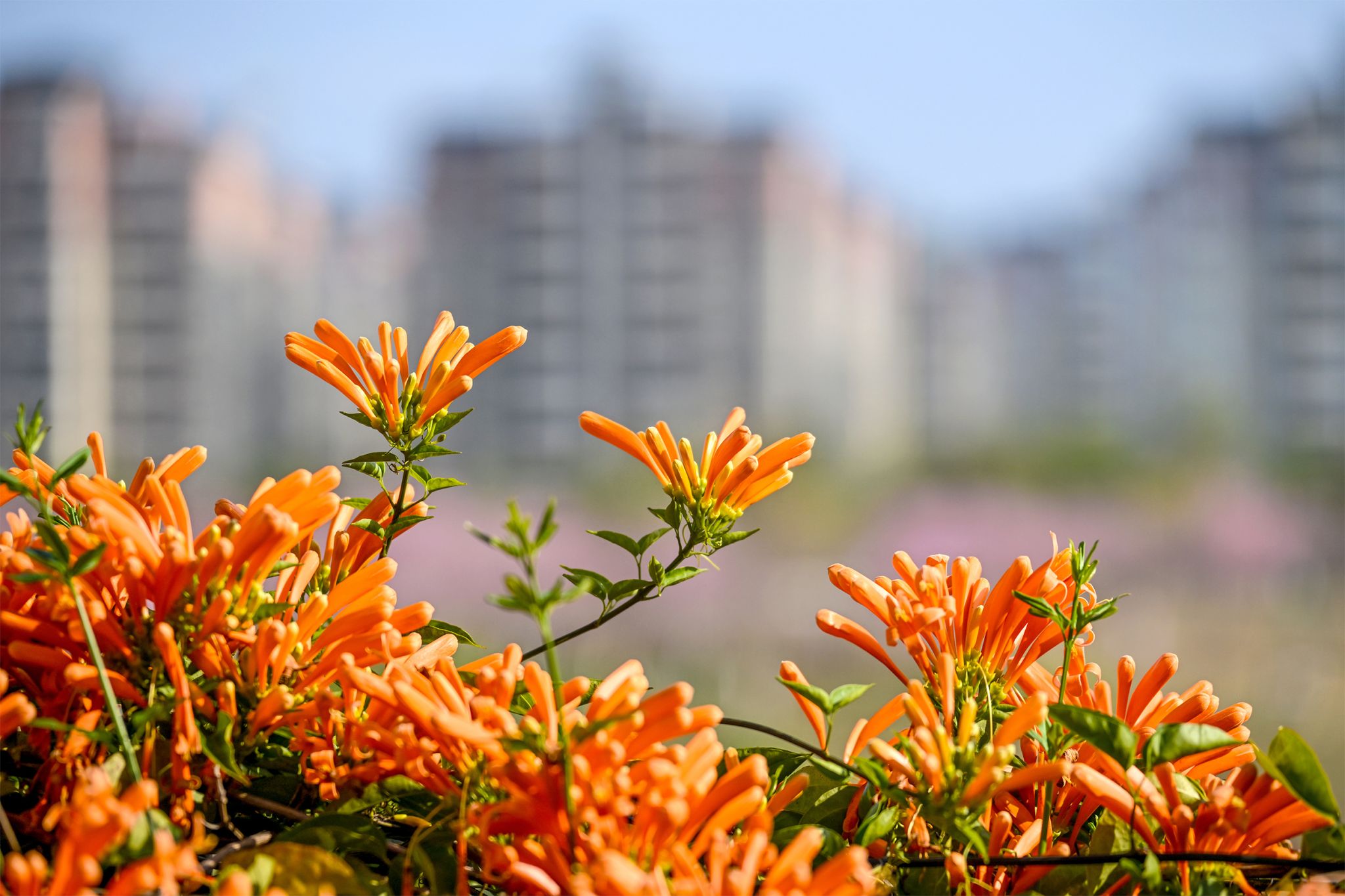 一串串橙红的炮仗花热烈炸开