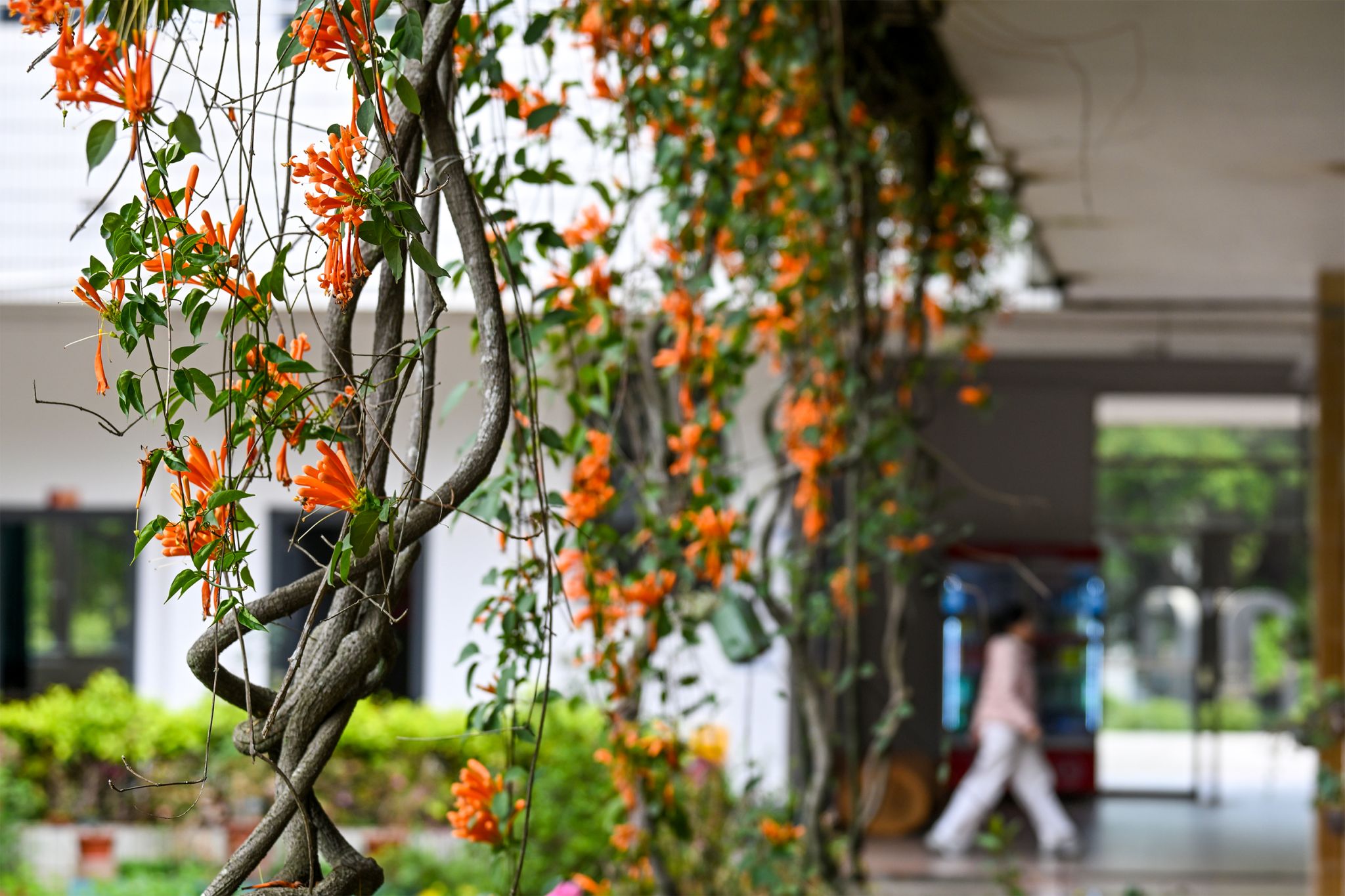 绿藤攀援着长廊