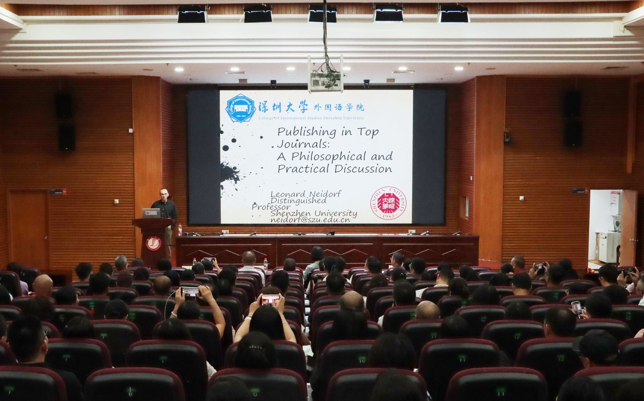 10月15日下午,我校“丹霞论坛”2025年第5期在图书馆学术报告厅举办。本次论坛特邀深圳大学特聘教授Leonard Neidorf博士担任主讲嘉宾,作题为“Publishing in Top Journals: A Philosophical and Practical Discussion”的专题学术讲座。本次讲座由韶关学院校长、博士生导师张晓红教授主持,200多名教师和研究生到场聆听。