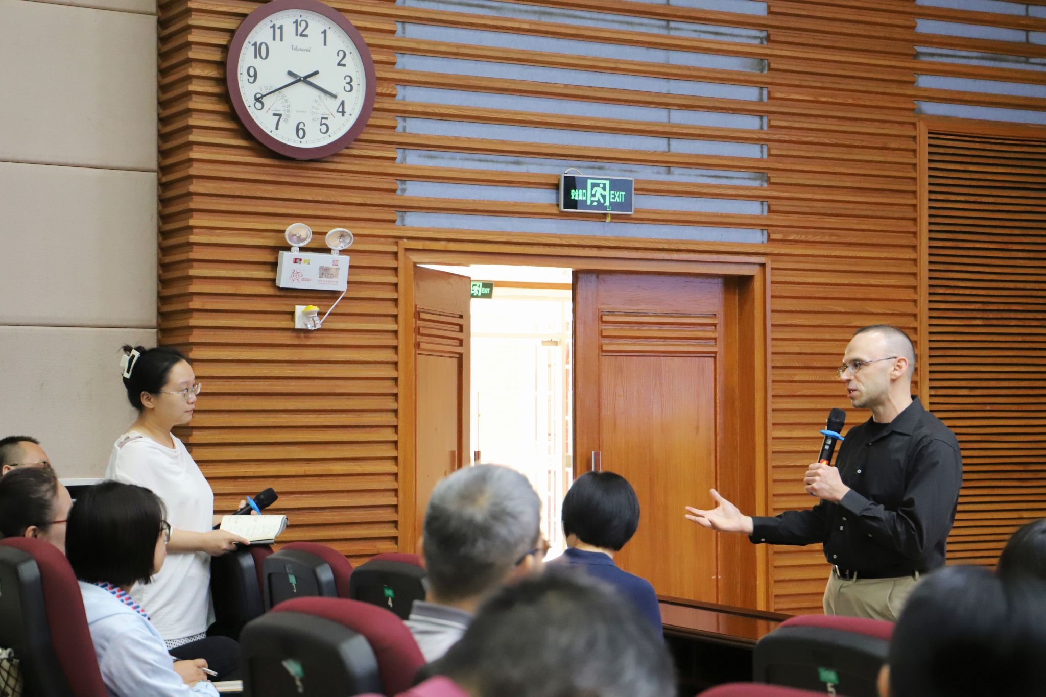 互动环节由学校副校长何金明教授主持。来自不同学科的十余名师生就外文期刊选题、撰写、投稿、修改等议题积极提问,Leonard Neidorf教授一一详细解答,现场气氛热烈。