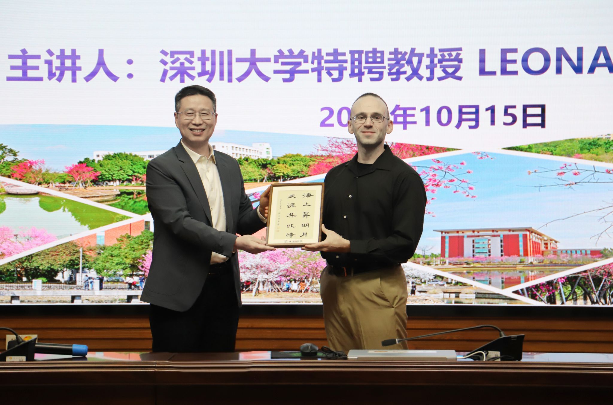 何金明代表学校向Leonard Neidorf教授赠送纪念品