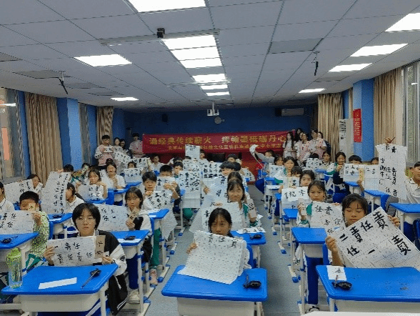 作为校地结对共建的延伸实践,文学与传媒学院红韵文化宣讲队走进龙归中学,开展主题宣讲活动。宣讲以《少年中国说》为核心内容,通过齐声诵读、历史讲述与书法实践相结合的方式,引导学生感悟百年经典的家国情怀。队员们现场示范毛笔书写“责任”二字,讲解笔法要领,指导学生认真临摹。一撇一捺间,既是传统文化的浸润,更是使命意识的启蒙。