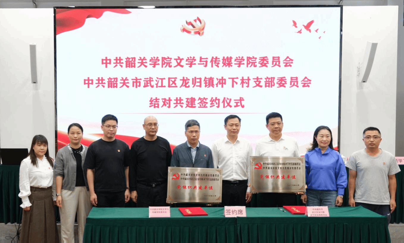 为深化党建共建工作,助力“双百行动”走深走实,10月29日下午,文学与传媒学院党委与龙归镇冲下村党支部举行结对共建签约仪式,并联合开展“‘党建+’助推‘双百行动’ 传统文化赋能乡村振兴”共建活动。韶关市武江区委组织部副部长张伟、武江区委编办副主任张国威、武江区直机关工委副书记张运运、龙归镇党委组织委员黄文勇受邀出席,文学与传媒学院党委书记骆雄辉、院长仲红卫一行,龙归镇冲下村党支部书记龚学飞及两委干部共同参与活动,以党建为纽带开启校地合作新篇章。