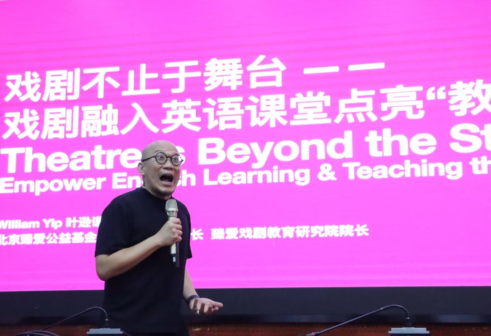 叶逊谦以“戏剧不止于舞台”为核心,深入阐释了戏剧教育在课堂教学中的独特价值。他指出,在人工智能迅猛发展的时代,知识传授已不再是教育的唯一目标,情感体验、身体表达、共情能力与幸福感知力,才是未来教师不可被替代的核心素养。他通过互动式讲解与即兴戏剧体验,引导师范生走入“具身课堂”现场——让身体参与思考,让情感融入教学,让课堂成为生命绽放的场域。