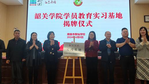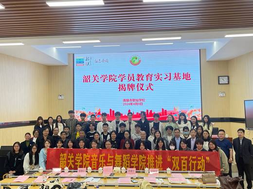 4月8日,音乐与舞蹈学院院长王群英、副院长林嘉旋、秦伟,教师教育实践教学管理中心主任刘新奇等一行6人赴南雄市黎灿学校开展“双百行动”实习基地揭牌仪式,受到南雄市教师发展中心主任周芸,黎灿学校党总支部书记、校长陈香等的热烈欢迎。