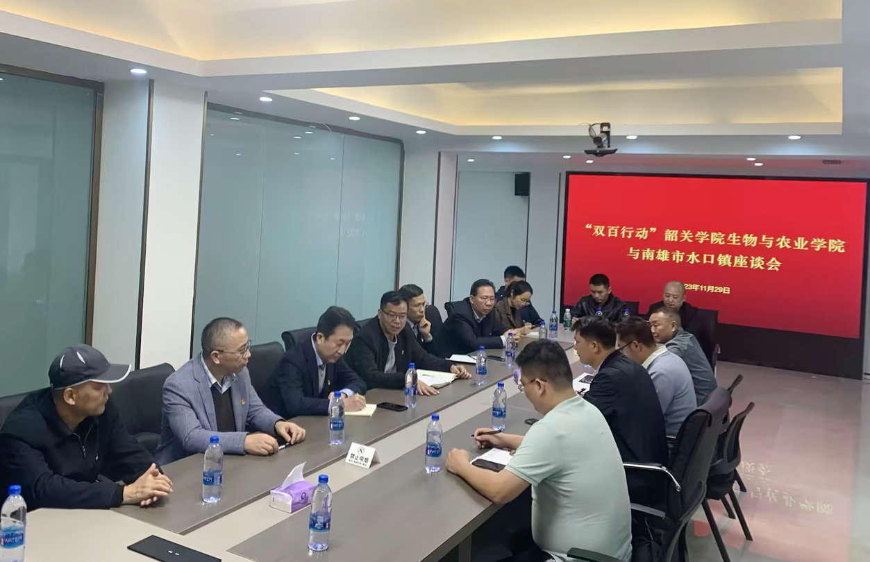 11月29日下午,生物与农业学院党委到南雄市水口镇政府开展“双百行动”调研,推进双百行动合作共建项目扎实开展。水口镇镇长叶红大、副书记卢良盛、水口镇人大主席罗青山等对生物与农业学院党委一行的到来表示热烈欢迎。
