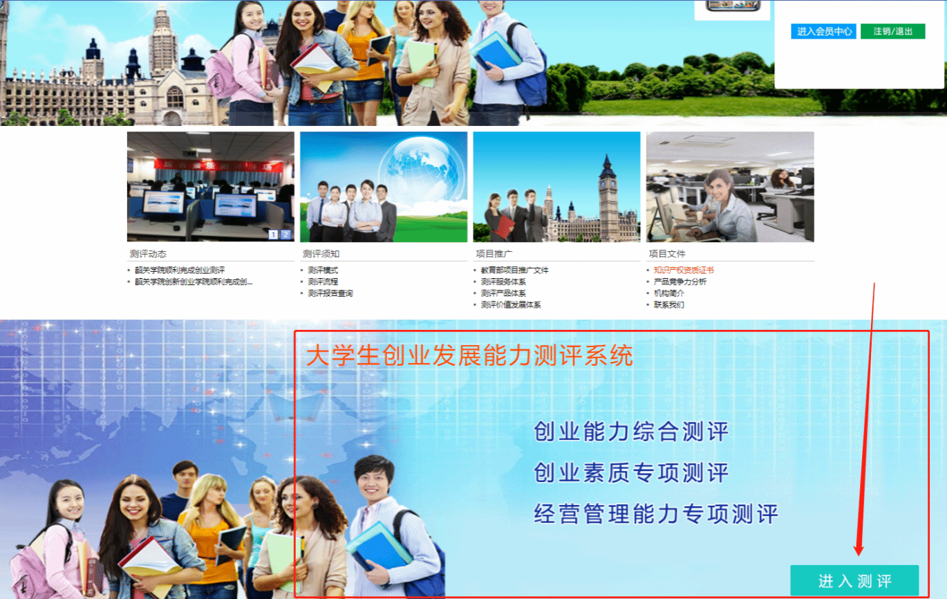 (三)点击“创业测评系统”后可免密进入,完成“大学生创业发展能力综合测评”即可,测评时长120分钟,题量约160题(题目为题库随机组题),测评界面如下: