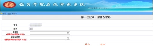 1.使用校内IP网络的,直接登陆“韶关学院在线评教系统”(http://yjcg.sgu.edu.cn/pj/login.aspx),登陆界面如下: