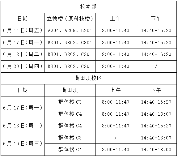 3.确因网络或设备终端原因无法登陆的,学校开放部分机房(安排表如下),有需求的学生有序参评。
