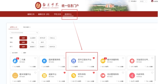 方法一:校园网用户通过统一身份认证平台应用中心进入正版软件管理与服务平台。