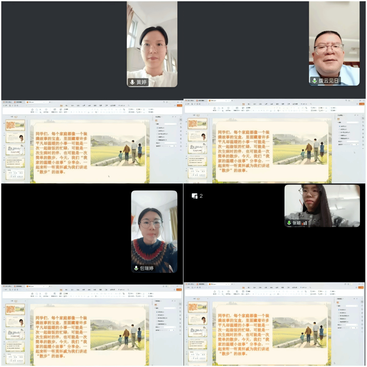 10月18日晚,初二语文组的培训由徐乐晴导师负责,李冬强、邓智坚等五位老师参加。同样从相互认识和初步理念交流开始,徐乐晴发现学员们对于对分课堂的理解也普遍停留在“老师讲一半,学生学一半”的浅层认知。她随即通过专题课件,引导老师们系统学习对分课堂的理论内核、四环节操作及对学生能力提升的显著作用。随后,以《白杨礼赞》为案例,徐乐晴深入讲解了从课件设计、任务单编制到教案撰写的全过程,并辅以《散步》的案例加深理解。培训结束后,所有相关资料均分享给学员供其深入研习,为后续实践打下坚实基础。