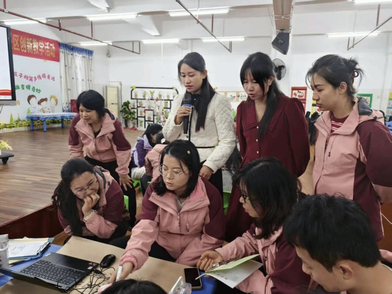 本次活动内容充实、形式多样,主要包括示范课展示、教学研讨、专题讲座及互动研讨等环节。在示范课展示部分,呈现了《瑶族长鼓乐》(中班音乐)、《瑶族吊脚楼》(大班美术)、《荷花鱼的专属名片》(大班综合)、《探秘生姜》(大班综合)等四节精彩课例,巧妙融入了乳源本土与非物资文化遗产资源。随后的教学研讨中,执教教师分享了教学设计意图与教后体会,专家进行了精准点评。