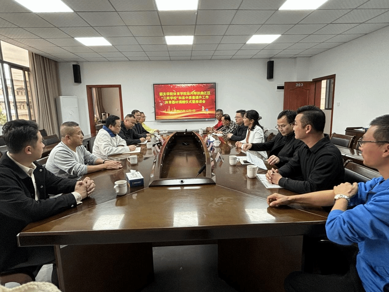 座谈会在曲江区教育局会议室举行。吴建逊表示,教育是民族振兴和社会进步的基石,支持教育事业发展是体育学院义不容辞的社会责任,希望此次捐赠的教学器材能有效帮助曲江区改善办学条件,为师生创造更好的教学环境。余志兵详细介绍了捐赠器材的种类和用途。谭金有强调,器材捐赠充分体现了体育学院对曲江区教育事业的高度重视和大力支持,这批教学器材将有效缓解部分学校教学设备不足的困境,对提升受助学校教学质量具有重要意义。他代表全区师生对体育学院的爱心捐赠表示感谢,并承诺将妥善分配和使用这批器材,最大限度发挥其教学价值。