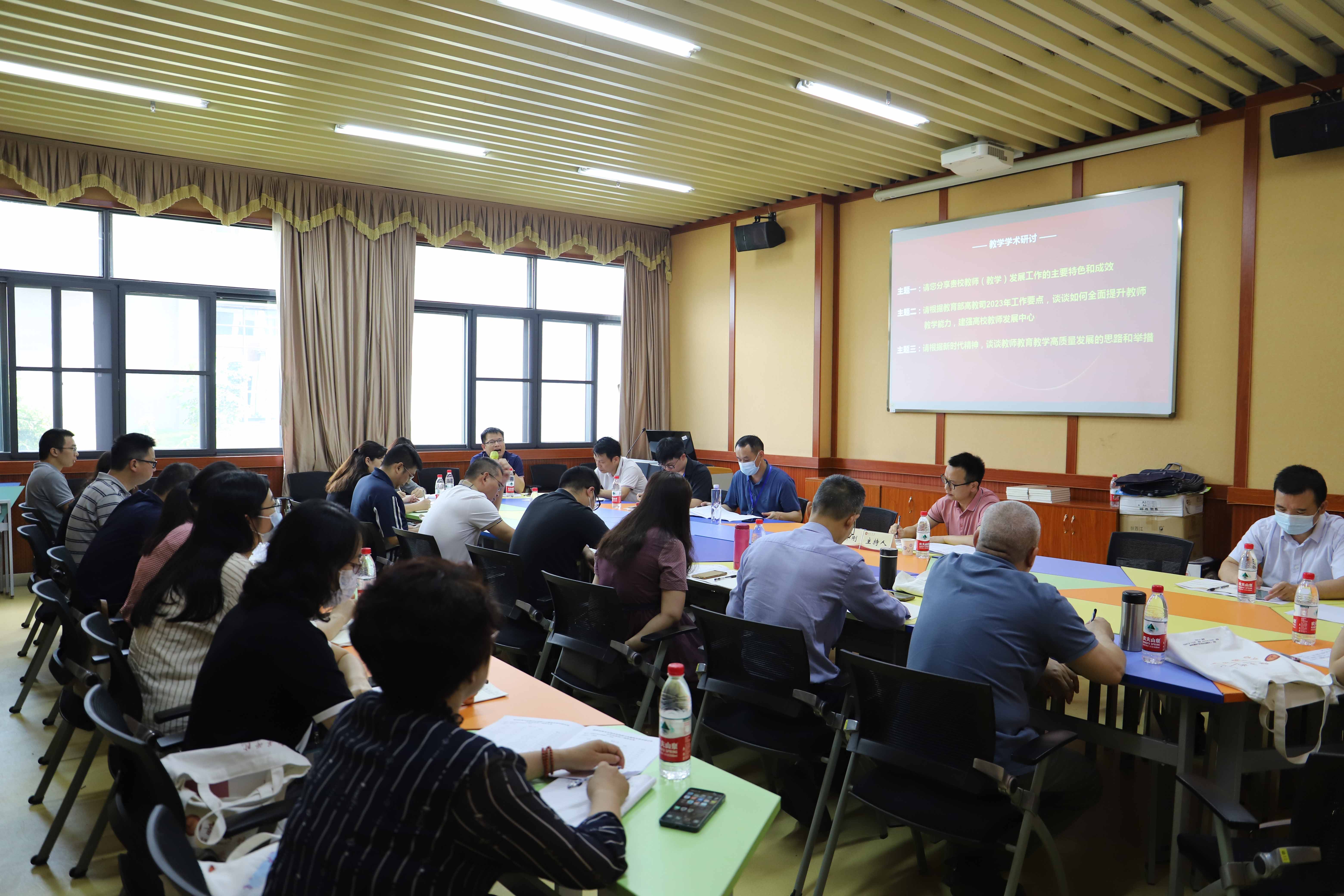 在学术研讨会上,广东外语外贸大学董俊武教授、韶关学院黄长征教授应邀作主题学术报告。其中,董俊武以“高校教师教学能力培训体系的构建与探索”为题,深入论述了我国高等教育进入追求高质量内涵全面发展的背景下,国内教师发展平台建设现状、常见问题与体系建构;黄长征就“创建教师教学共同体竞赛新范式,整体提升教师教育教学能力”详细阐述了教师教学共同体竞赛的源起、措施、实践、反思,以及创新成效,剖析了教师教学个体发展、团体发展和组织发展的融合之道。各高校教师教学发展工作者和专家学者围绕“如何建强高校教师教学发展机构”“如何建立高质量教师教学发展机制”“如何实现高质量教师教育教学发展”等问题进行了精彩纷呈的研讨。