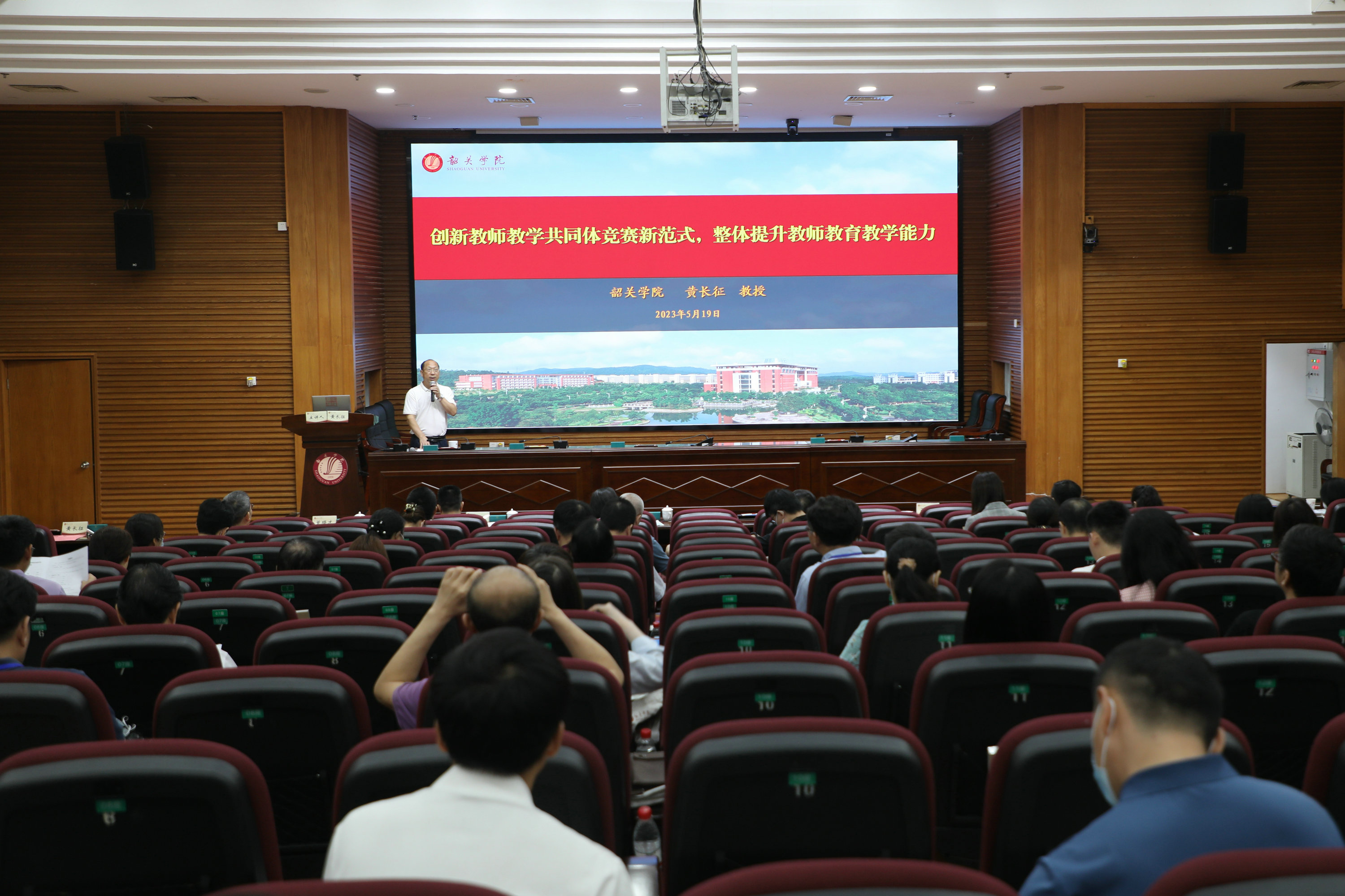 5月19日,广东省高等学校教学管理学会教师发展专业委员会换届大会暨学术研讨会在我校举行。会上,我校教务部部长、教师教学发展中心主任黄长征在明德楼学术报告厅作“创新教师教学共同体竞赛新范式,整体提升教师教育教学能力”专题报告。