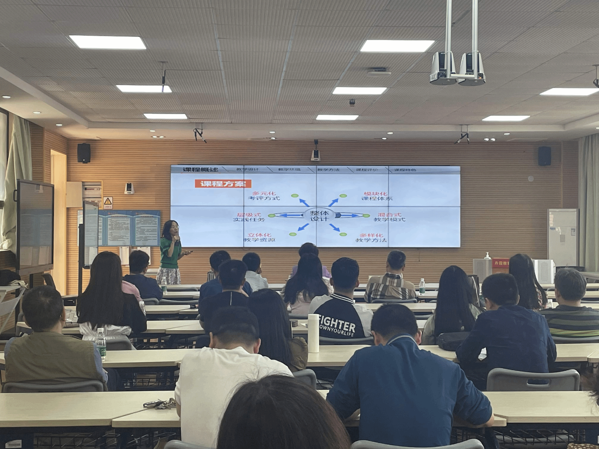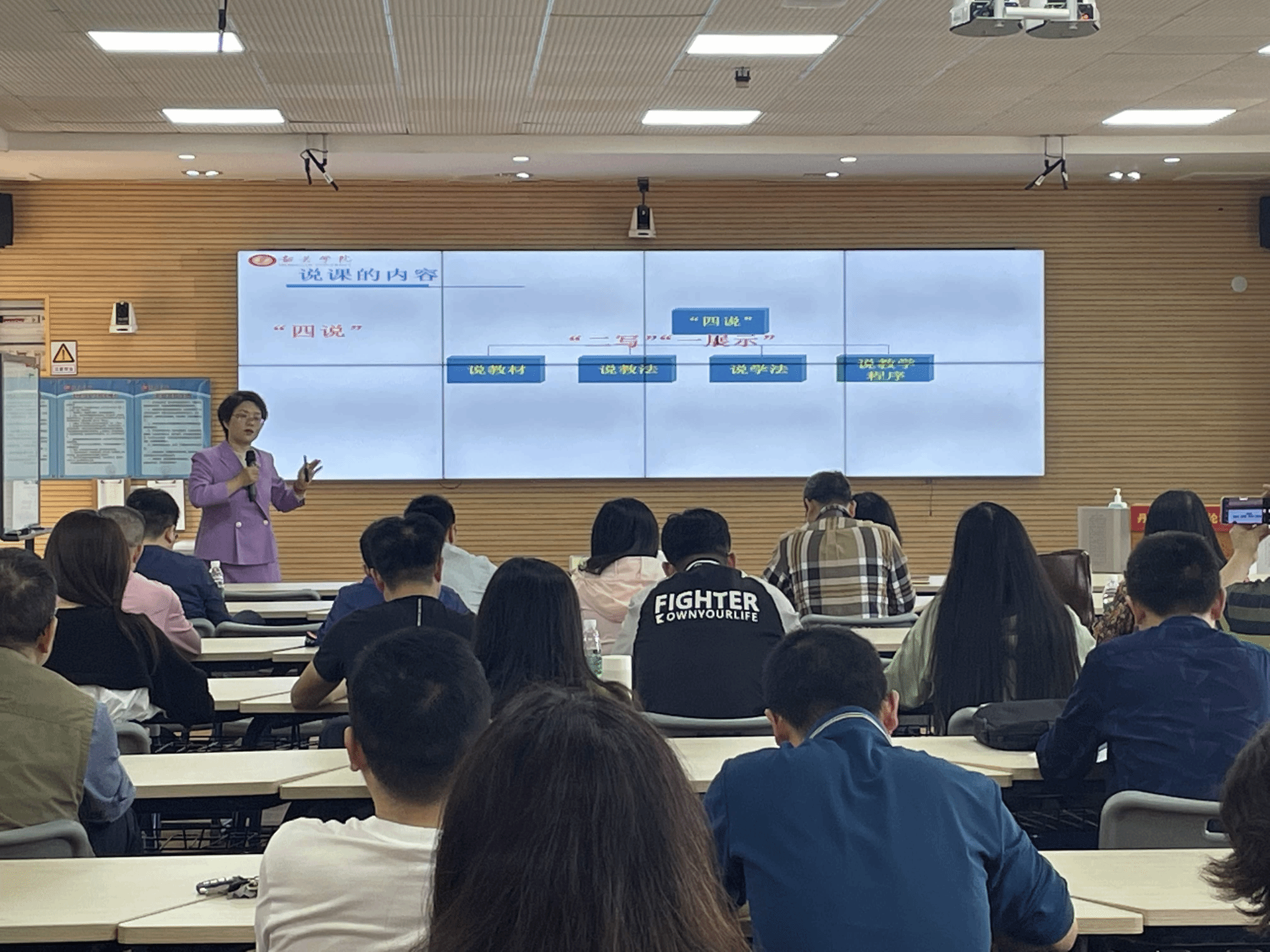 为推进教师教学共同体竞赛和新入职教师培训,提高教师教育教学能力,3月23日下午,学校教师教学发展中心于知遇楼407室开展了课程与章节说课专题培训,本次培训采取线上线下相结合的形式,线上培训由各二级学院组织教师们参加,参加线下培训教师近40人,培训特别邀请黄晓萍副教授和张丽娜老师担任培训师。