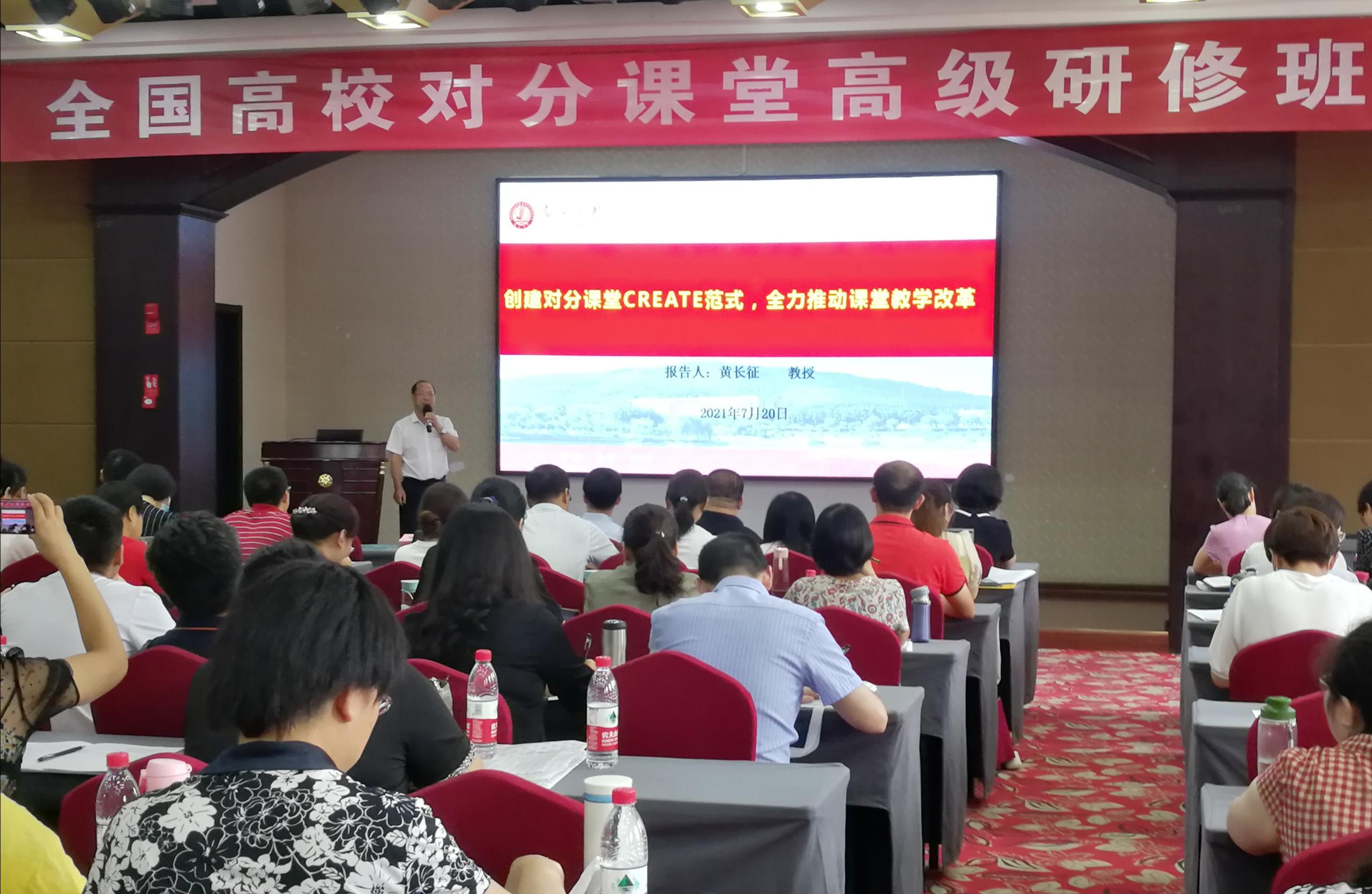 2021年7月19日至21日,由全国高校教师网络培训中心主办的全国高校对分课堂高级研修班在山西太原举行,来自全国22个省、自治区、直辖市210余名高校一线教师、教学管理人员参加。我校在高级研修班上作专题报告。