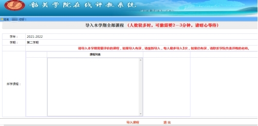 2.自行导入本学期全部课程并核对,如有缺漏可以重新导入;如果课程信息存在缺漏的,请反馈所在二级学院。