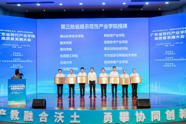 大会成立了广东省现代产业学院发展联盟,发布了《高质量建设现代产业学院的共识(广东共识)》,提出要打造现代产业学院广东品牌,培养产业亟需人才。我校信息技术产业学院获批第三批示范性产业学院,并在大会现场接受授牌。