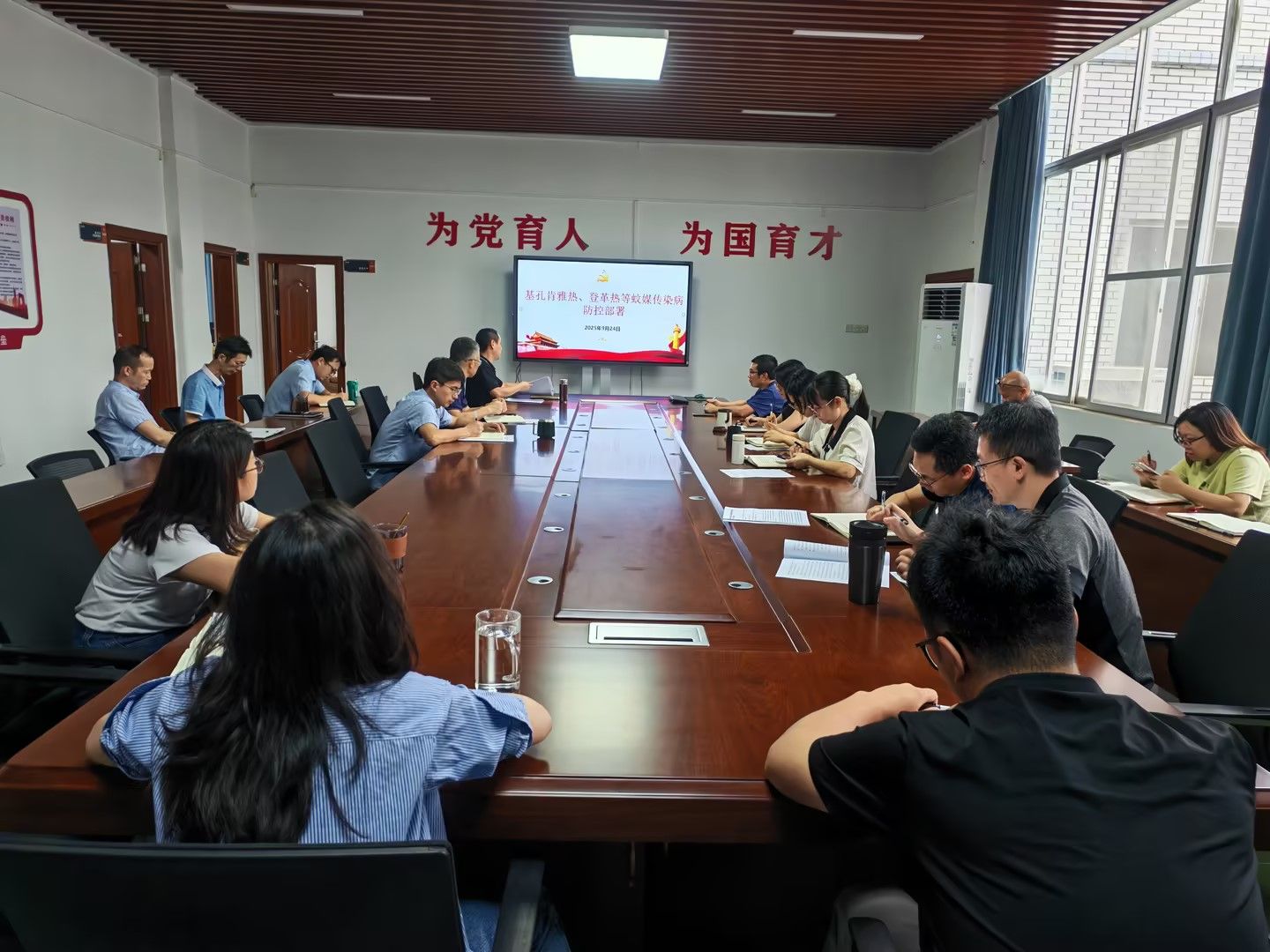 防控工作坚持以宣传教育为先导。教务部领导班子深刻认识到当前蚊媒传染病防控工作的重要性和紧迫性,部门及时召开全体教职工会议,向全体教职工传达学校相关指示精神,详细解读基孔肯雅热、登革热等疾病的危害性及防控要点。同时,也向全体教职工普及基孔肯雅热和登革热的病原学知识、传播途径、临床症状及科学的预防措施。引导大家增强自我防护意识,自觉清除积水、防止蚊虫滋生,外出做好防蚊叮咬措施,营造“每个人是自己健康第一责任人”的良好氛围。