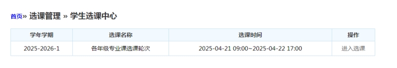 1.学生选课中心→各年级专业课选课轮次→进入选课