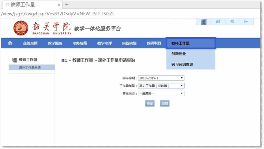 根据《韶关学院教学工作量计算办法》的要求,按照学期教学任务实际完成的教学工作情况填报。