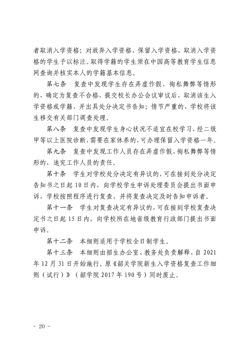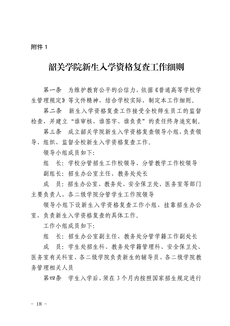 附件1:韶关学院新生入学资格复查工作细则