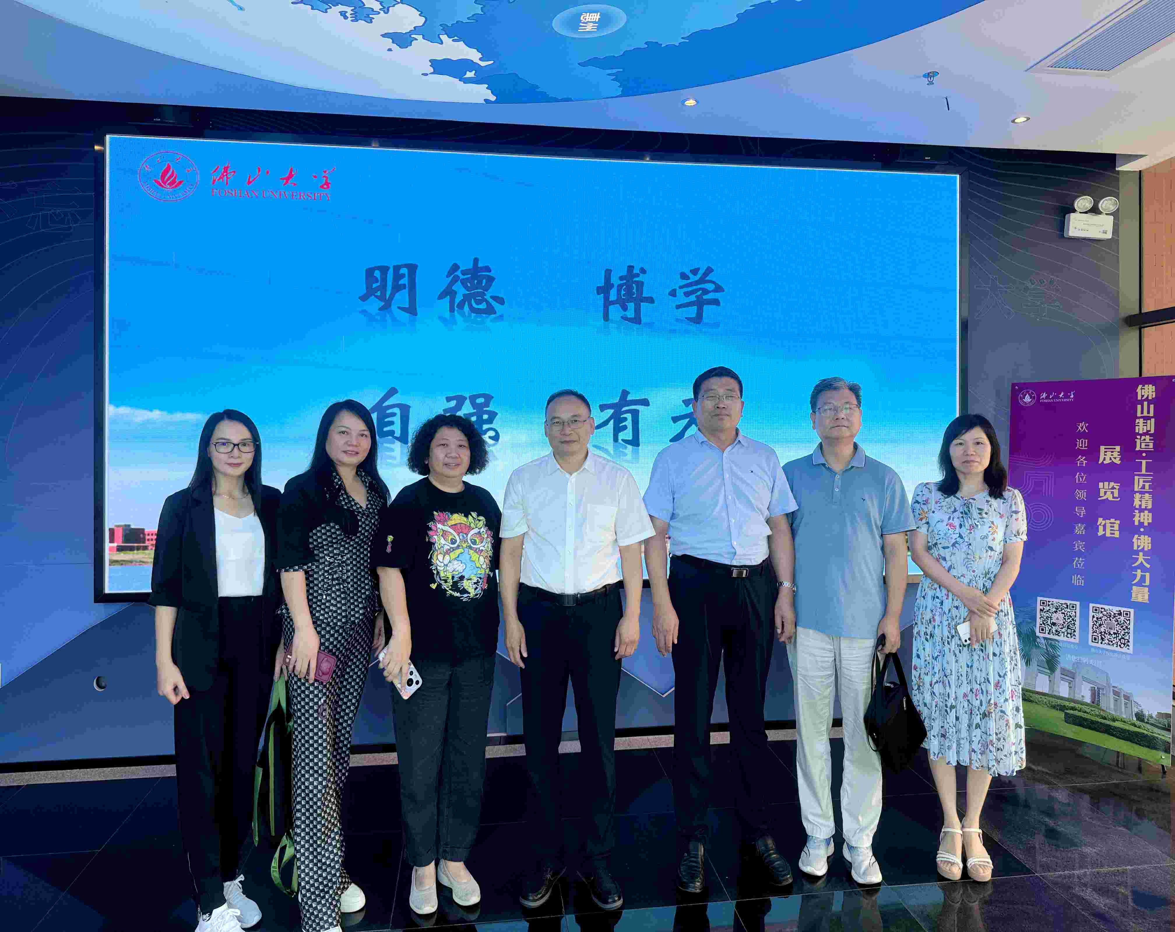 在佛山大学展览馆参观 座谈会后,田广增一行参观了佛山大学展览馆《佛山制造·工匠精神·佛大力量》,了解佛山大学的办学历史、办学特色与优势、人才战略、师资团队以及产学研合作项目。