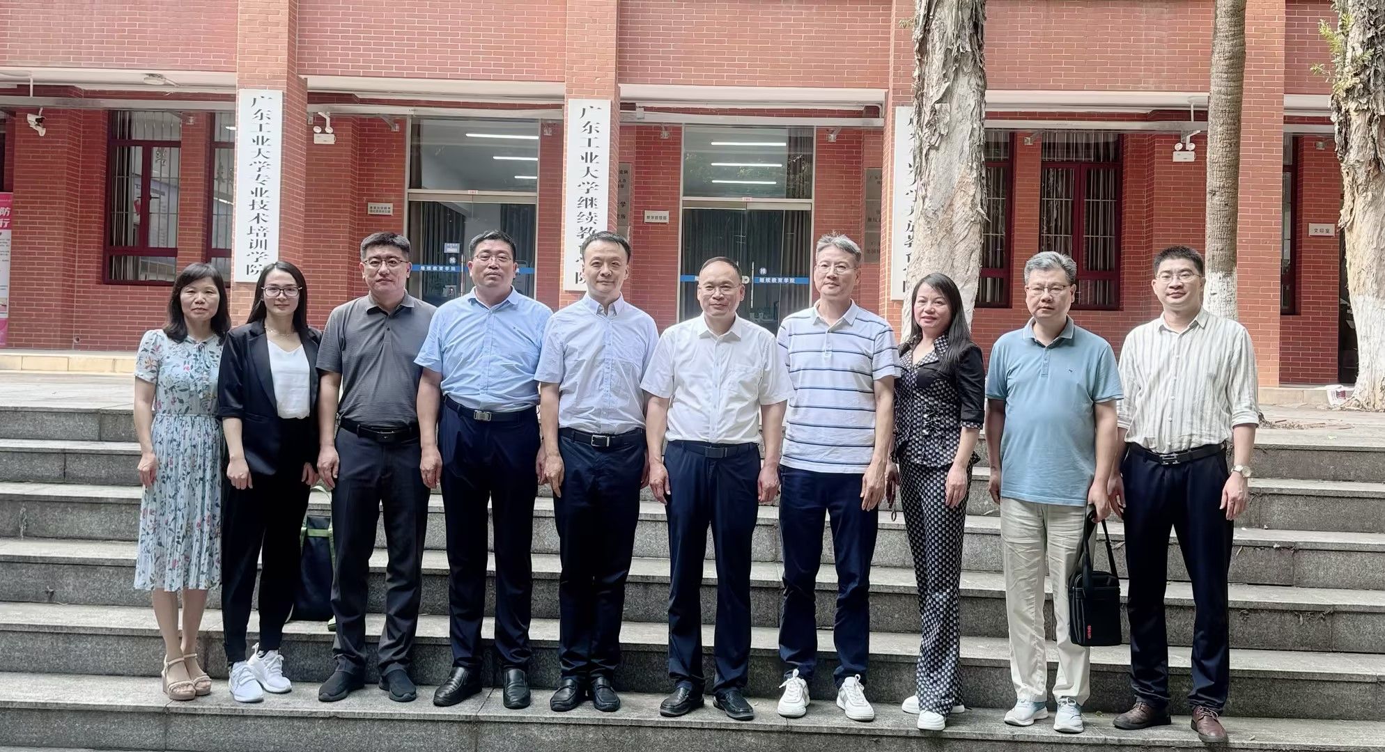 在广东工业大学继续教育学院与领导班子合影 田广增表示,两所高校的继续教育专业分布、自学助学项目办学过程等历史经验值得我校学习,尤其在涉及专业申报、合作单位遴选等相关难点及办学措施等方面的经验,为我校继续教育学院在将来开拓自考助考项目过程中可能会遇到的风险提供思路。田广增还表示,下一步,期待与佛山大学、广东工业大学持续加强联系与合作,借鉴先进经验,共同探索继续教育发展的新出路,携手共进,不断提升继续教育办学质量、提高继续教育管理服务水平,实现继续教育高质量发展,为培养更多优秀人才、推动地方经济社会发展贡献更大的力量。同时,发挥我校自身优势,找准互补需求,深化合作办学层次,实现合作共赢,为学校继续教育事业高质量发展提供坚实有力的支撑。