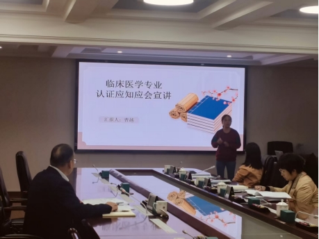 会上,医学院副院长曹越对临床医学专业认证相关知识、概况、学校认证相关工作、临床医学专业办学等相关内容进行了宣讲,使与会人员对临床医学专业认证工作、医学教育发展与建设有了更深入透彻的理解。