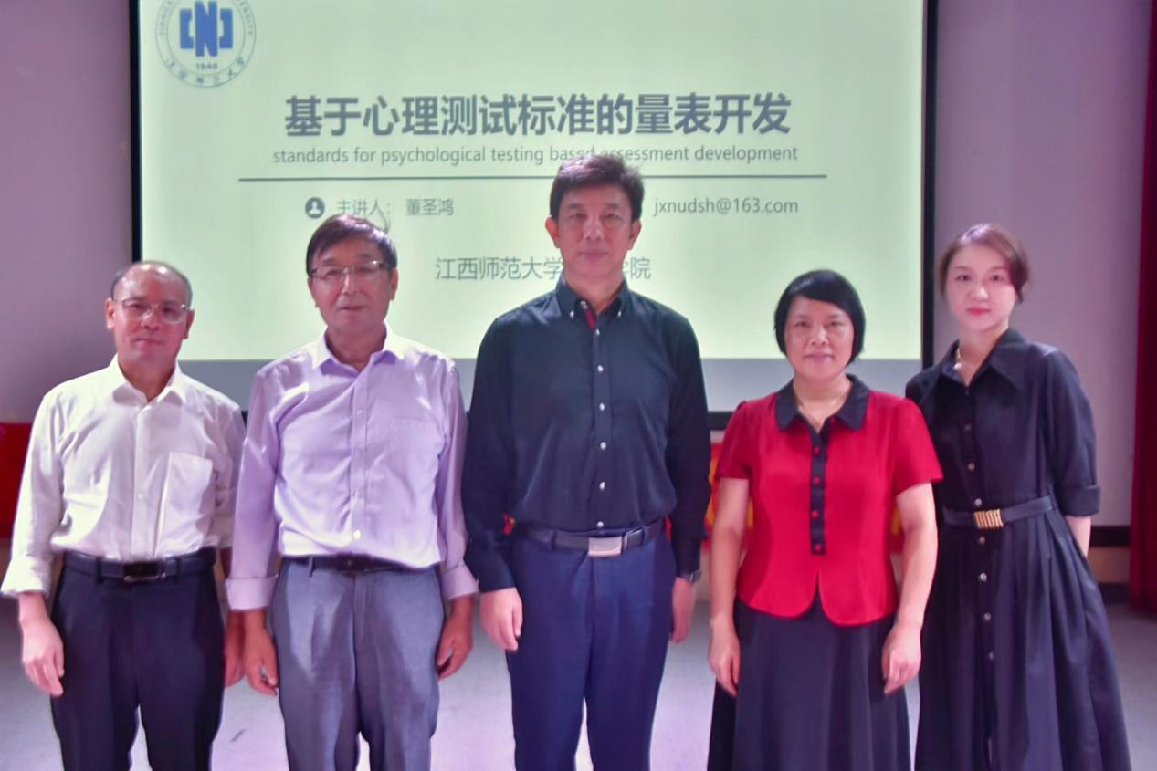 为了提升学生的学科知识和专业素养,11月4日上午,教育科学学院在知书楼113举办了主题为“基于心理测试标准的量表开发”的讲座。讲座邀请了国内心理与教育测量领域的知名专家、江西师范大学副校长董圣鸿教授担任主讲嘉宾,韶关学院教师教育实践教学中心副主任刘新奇教授、教育科学学院心理学系教师及2021、2022级心理学和小学教育专业学生共计170余人参加,讲座由韶关学院原副校长徐剑教授主持。