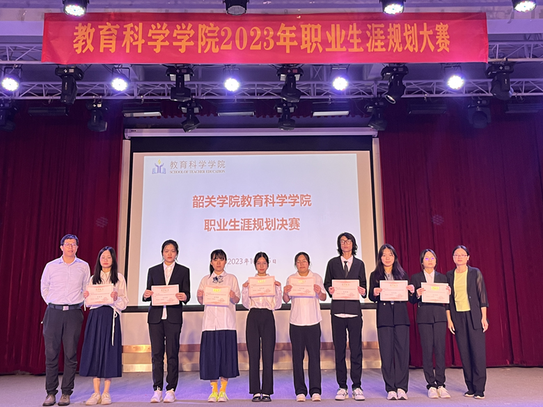 为加强我院生涯教育与就业指导工作,增强学生生涯规划意识,教育学生尽早做好就业准备,确实促进学生高质量就业,根据《广东省教育厅关于举办首届全国大学生职业规划大赛广东省分赛的通知》和学校《关于举办首届全国大学生职业规划大赛校赛(成长赛道)活动的通知》相关要求,我院于2023年10月25日,在知行区知书楼113演播厅举办“2023年大学生职业生涯规划大赛(成长赛道)院级决赛”。本次大赛共有一百多位选手参赛,经参赛材料初选和学院初赛遴选出20位选手进入决赛,评出一等奖2人,二等奖3人,三等奖5人,优秀奖10人。出席学院比赛决赛的评委有教育科学学院学工办负责人刘国波、辅导员兰昊、肖书兴、曾小翠、洪瑶。