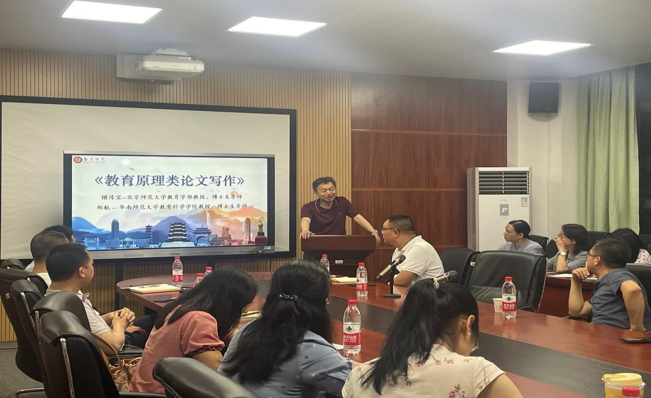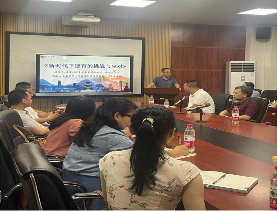 2023年5月26日,教育科学学院特邀北京师范大学教育学部檀传宝教授、华南师范大学教育科学学院郑航教授进行“教育原理类论文写作”“新时代下德育的挑战和应对”为主题的讲座,学院部分教师和学生参加了讲座,讲座由教育学系主任张成林博士、副教授主持。