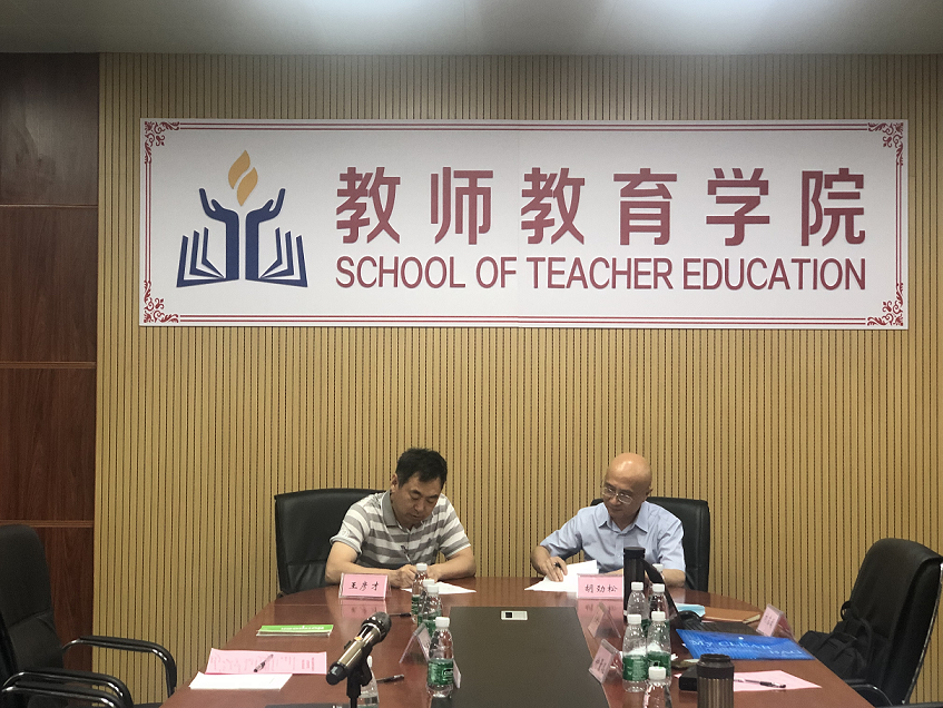 6月14日,华南师范大学教育领导科学专业博士生指导组召集人、博士生导师、中国教育学会教育政策与法律研究分会副理事长、广东省人大常委会立法咨询专家胡劲松教授,率广东省普通高校特色新型智库“华南师范大学基础教育治理与创新研究中心”团队成员一行来我校指导交流。我校教育科学学院院长王彦才教授热情接待了胡劲松教授一行。交流会由教育科学学院副院长张雯闻博士主持。